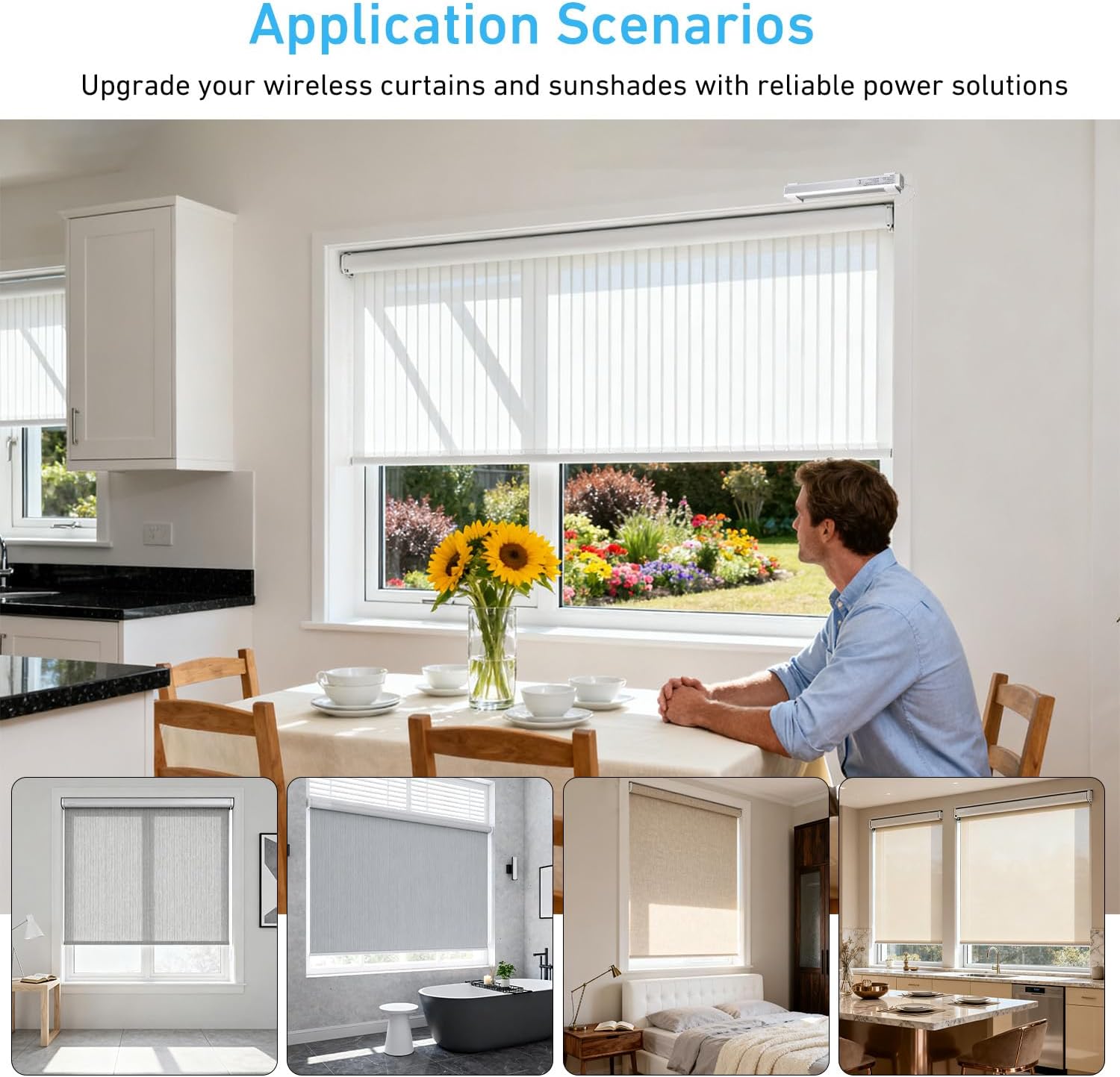 High-Capacity & Long-Lasting -This rechargeable battery pack provides clean, wireless power to your DC12V motorized blinds and shades, giving you a sleek, professional look without hardwiring. 2600mAh lithium-ion battery powers cordless blinds/shades for 6-8 months on a single charge (based on daily use),