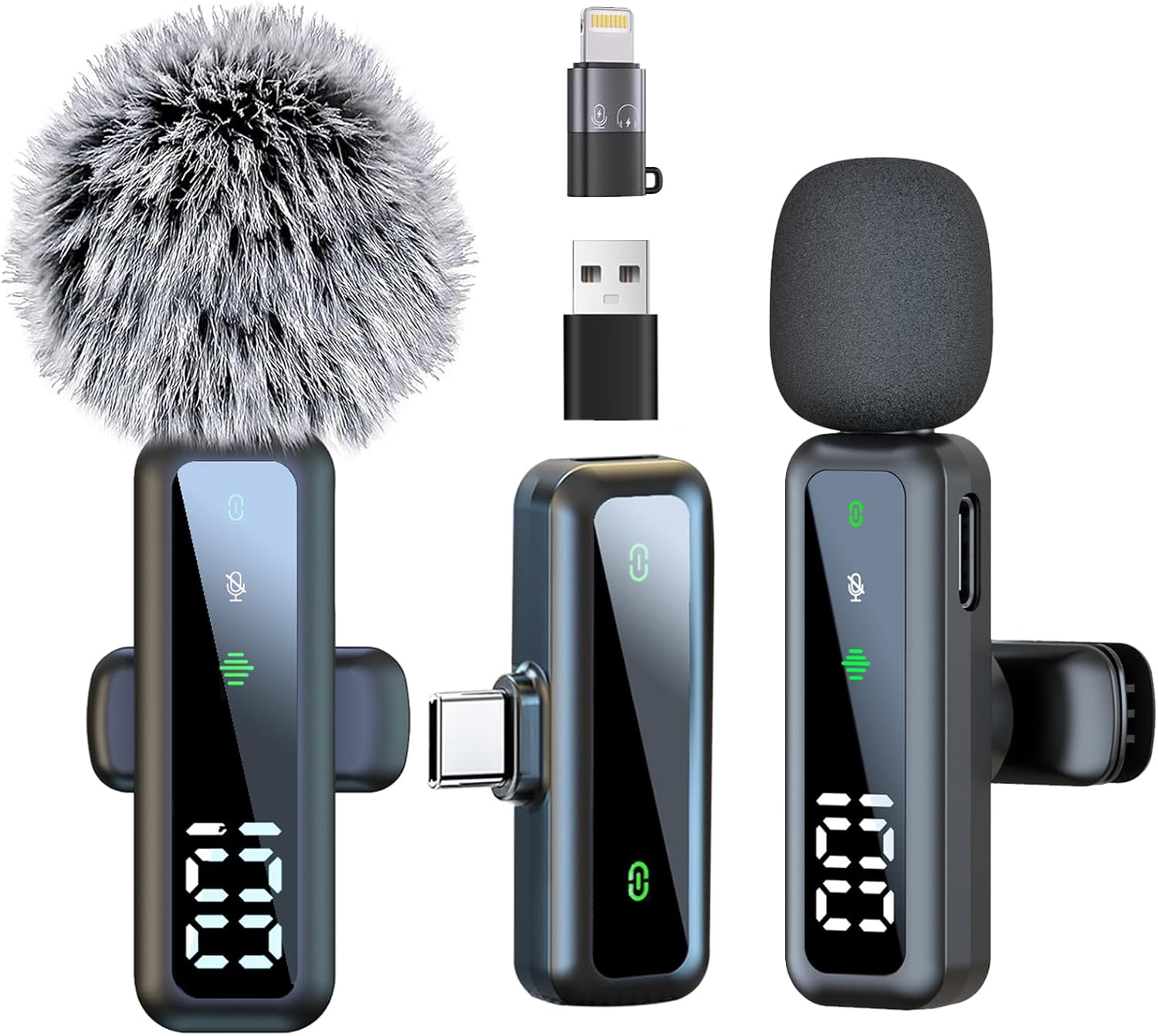 👌 Easy Clip-On Design – Lightweight and portable lavalier microphones that clip easily to your shirt. Enjoy hands-free, wireless freedom for any recording scenario.