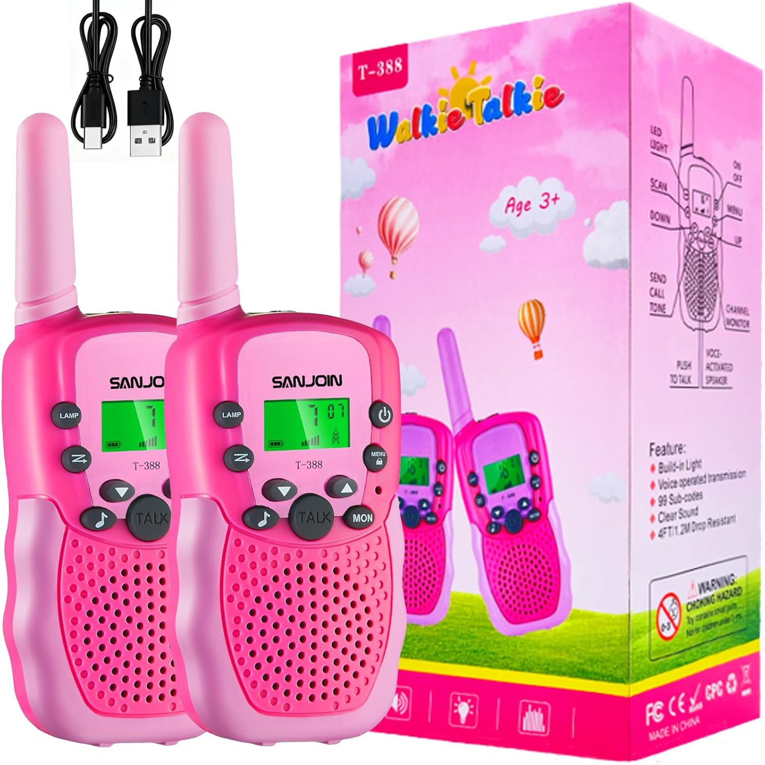 Rechargeable Walkie Talkies for Kids,2025 Top Toys for Ages 5-7 Girls Christmas Best Gifts for 5 Year Old Girl,Pink Xmas Stocking Stuffers for 5 Year Old Girls,Useful Camping Travel Essentials