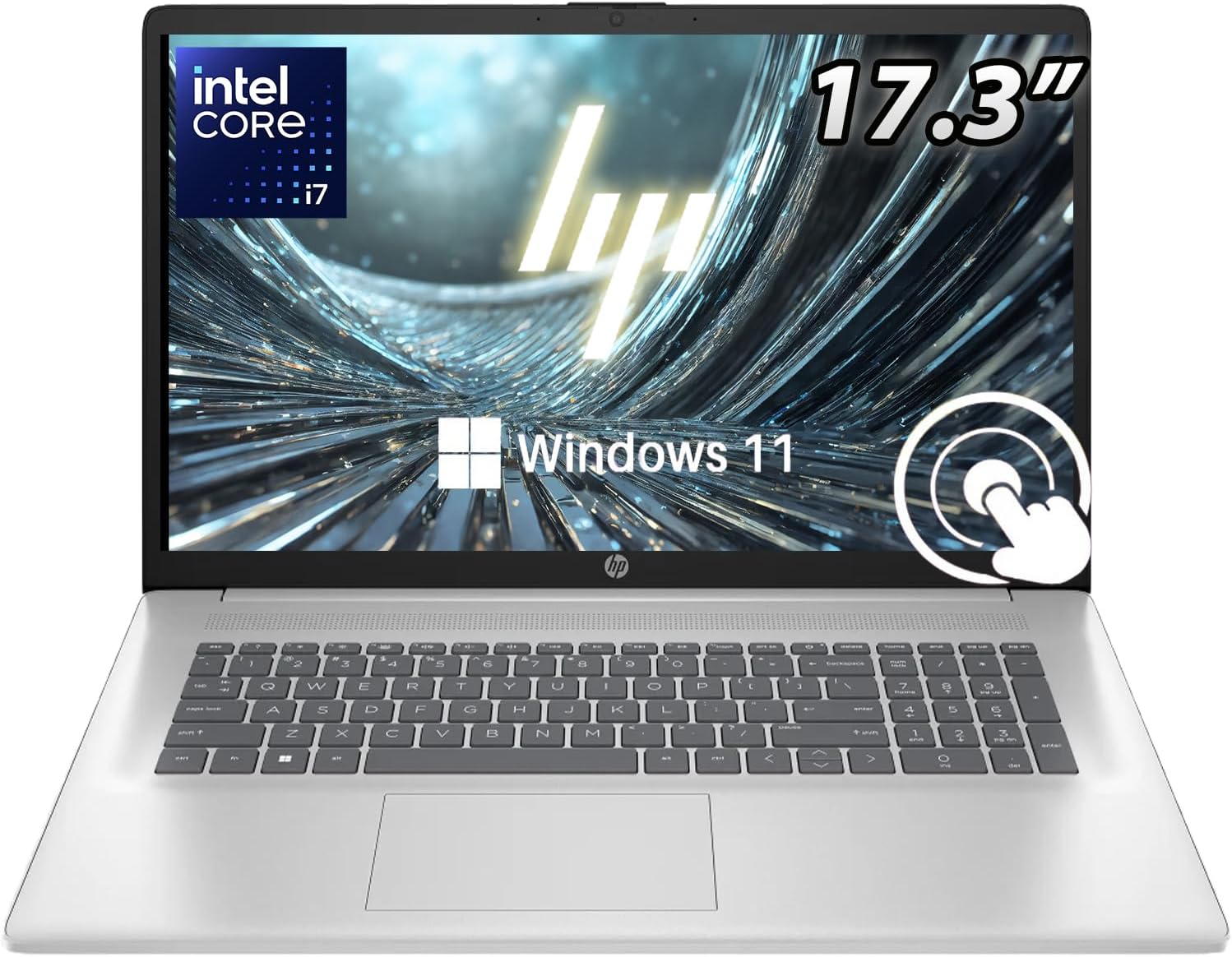 Processor: Intel Core 7-150U (10-Core) Processor Graphics: Integrated Intel Graphics Operating system: Windows 11 Home Memory: 40GB DDR4 Hard Drive: 2TB Solid State Drive (SSD) Optical Drive: No Display: 17.3" Touchscreen Brightview HD+ (1600 x 900) 250-Nits Display Connectivity: Wi-Fi 6 (2x2) and Bluetooth 5.3 Audio: HD Audio with Stereo Speakers Keyboard: Full-Size Backlit Keyboard with Numeric Keypad WIth HP Imagepad Built-in HD Webcam: HP True Vision 720p HD Camera with temporal noise reduction and integrated dual array digital microphones Ports: 1 x USB Type-C 3.0 2 x USB Type-A 3.0 1 x HDMI 1.4b 1 x Headphone / Mic Combo Jack Battery: 3-Cell 41Wh Li-Ion Battery Color: Natural Silver Dimensions: 15.78 x 10.15 x 0.81 inches Weight: 4.84 lbs