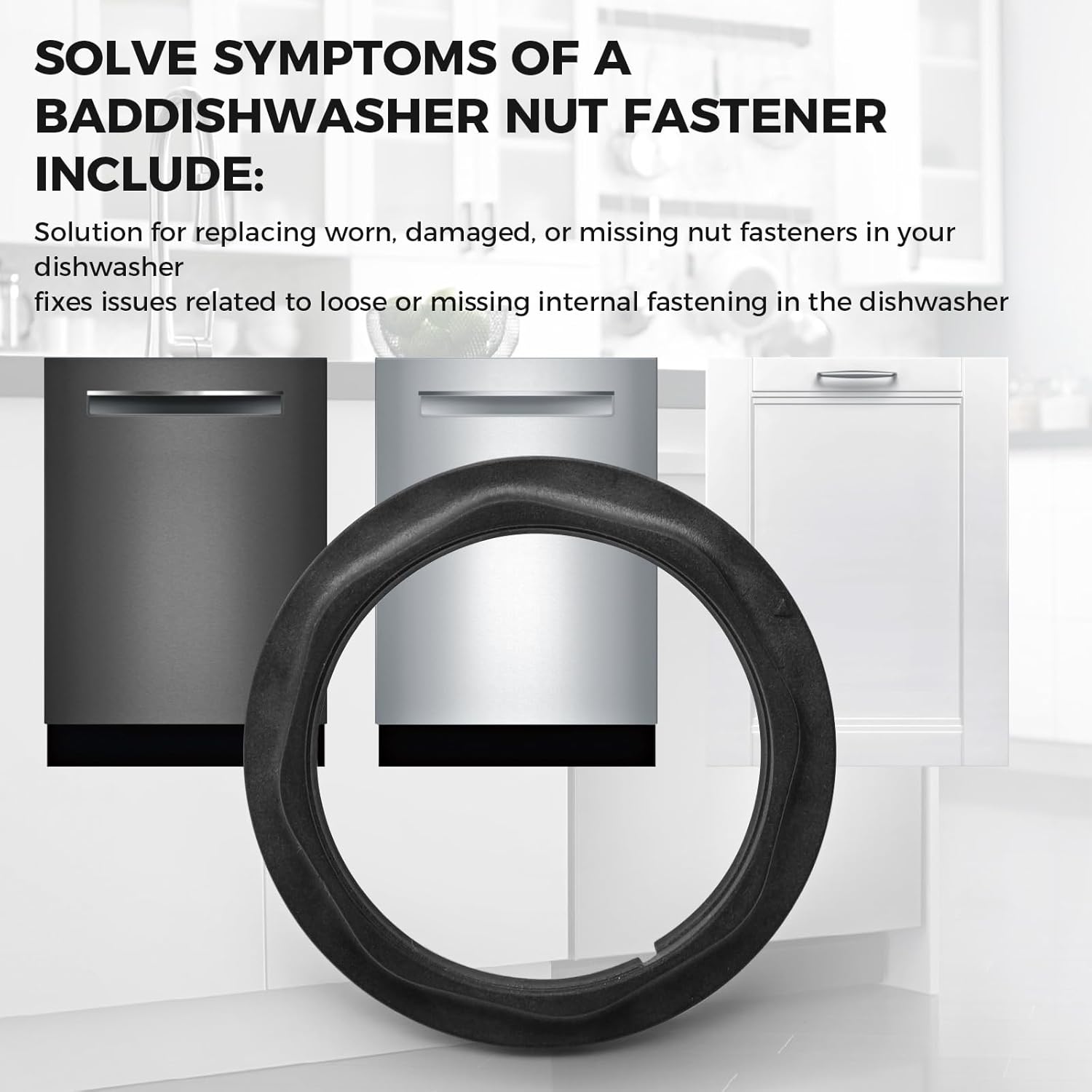 Ultra Durable and Cheap Insurance: Solution for replacing worn, damaged, or missing nut fasteners in your dishwasher. Restores stability and function with a simple install, fixes issues related to loose or missing internal fastening in the dishwasher, restores appliance to factory condition