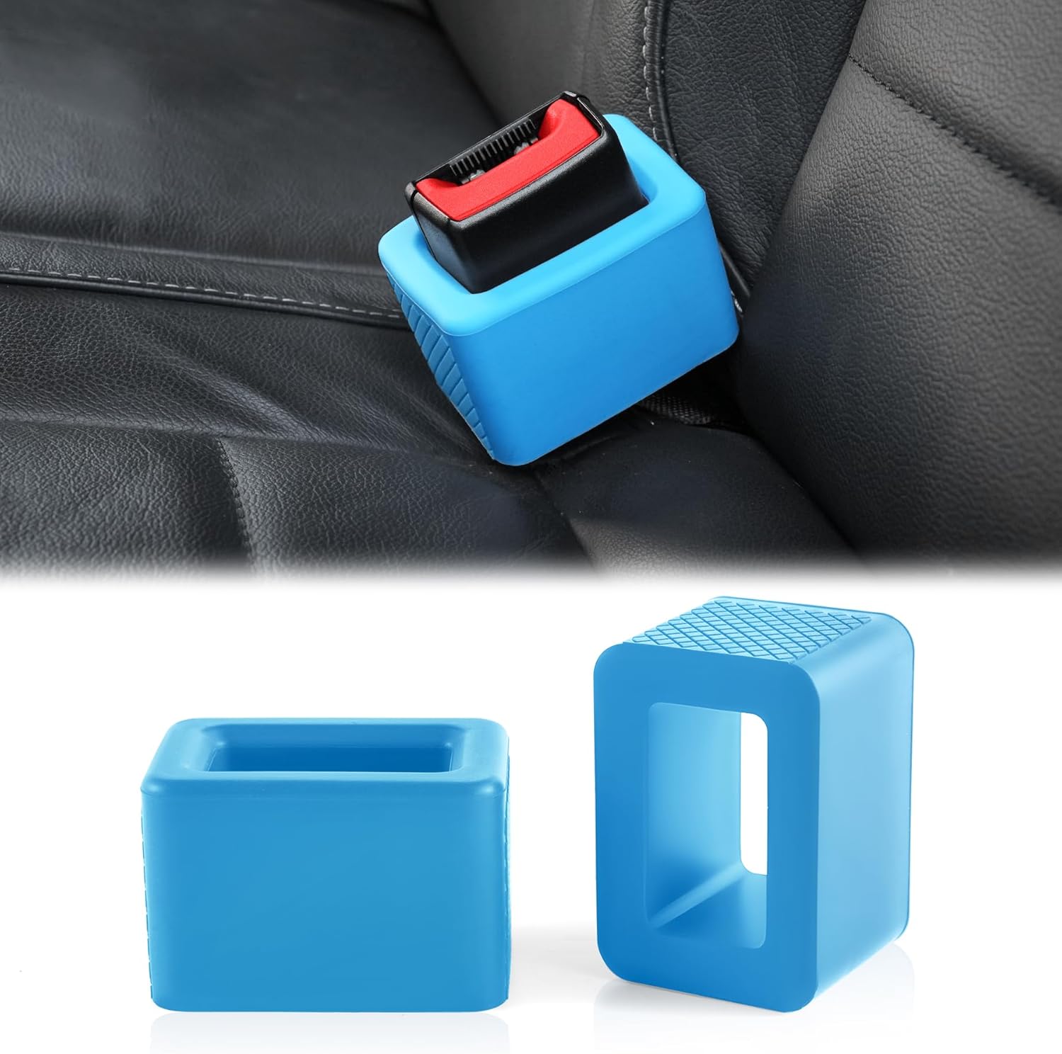 Amiss 2PCS Seat Belt Buckle Holder, Universal Silicone Rear Seat Belt Booster & Fixer for Easy Access, Keeping Receptacle Upright for Kids and Adults, Car Interior Accessories-Fits Most Cars (Blue)