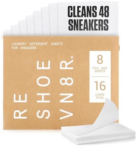 RESHOEVN8R Shoe Wash Detergent Sneaker Laundry Sheets – 16 Loads, Cleans 48 Shoes – Eco-Friendly Shoe Cleaner for Washer – Safe on All Shoes, Laces and Other Shoe Materials
