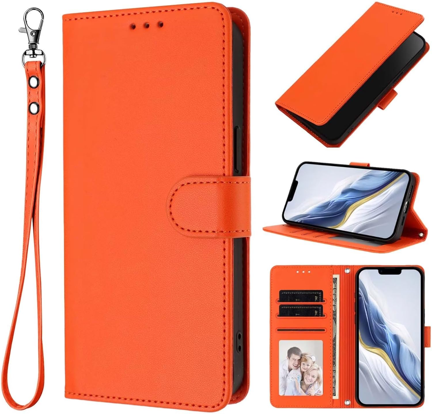 Wallet Case for Moto G54 Power / G54 Power Edition, PU Leather Flip Cover with TPU Inner Shell, Shockproof Protection, Card Slots, Cash Pocket and Wrist Strap-Orange