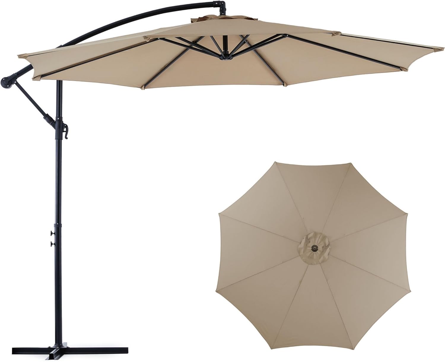 SMUG 10FT Large Cantilever Patio Umbrellas, Hanging Outdoor Offset Patio Umbrella with 8 Ribs, UV Protection for Pool Garden Backyard Market, Khaki