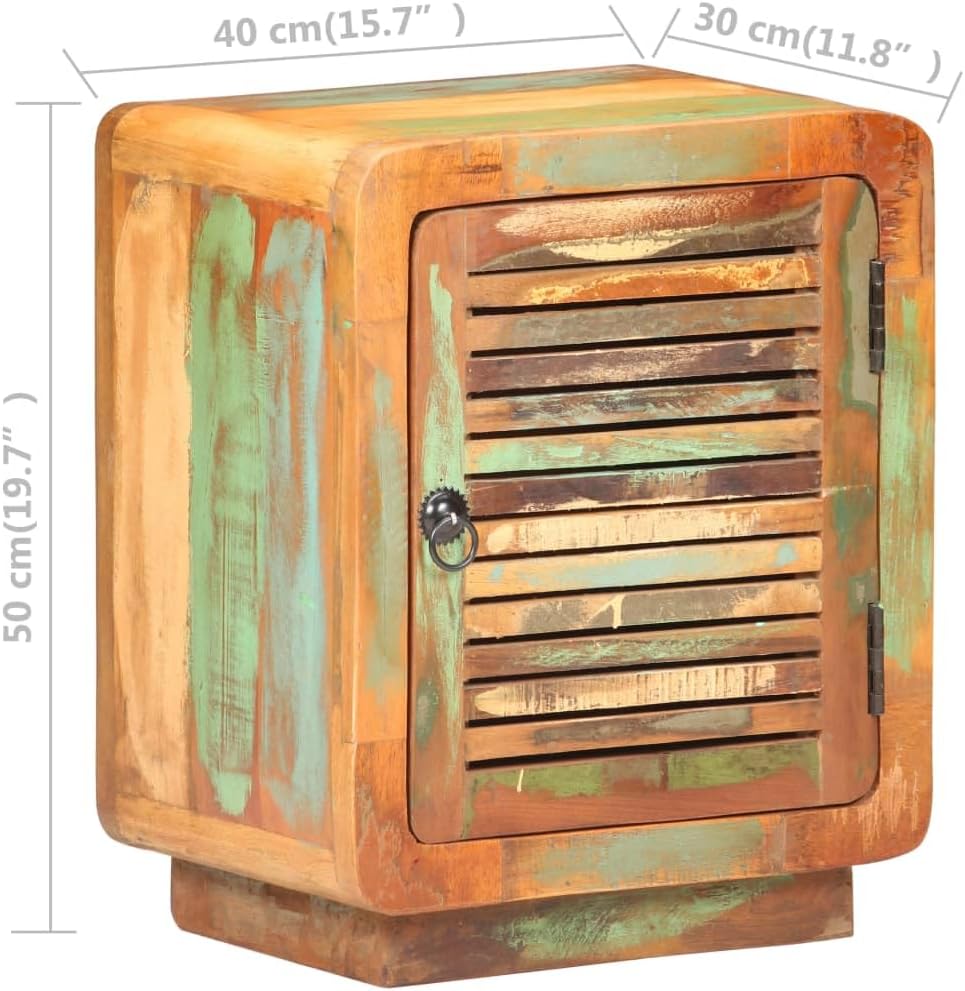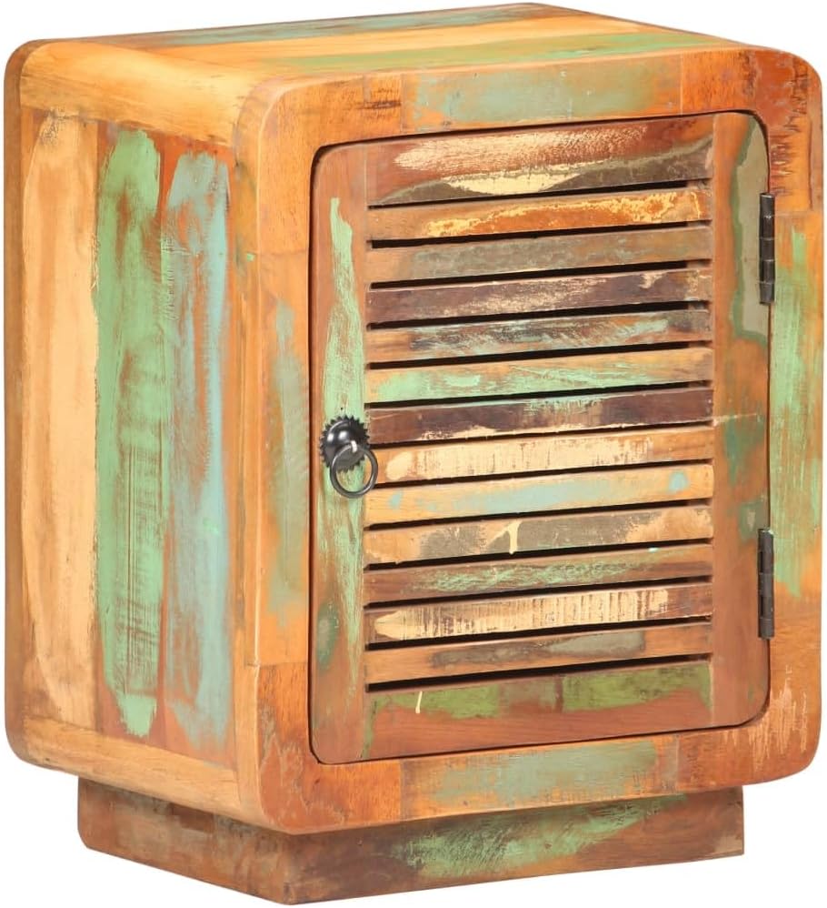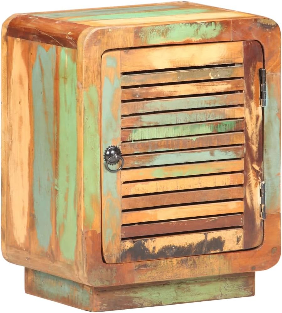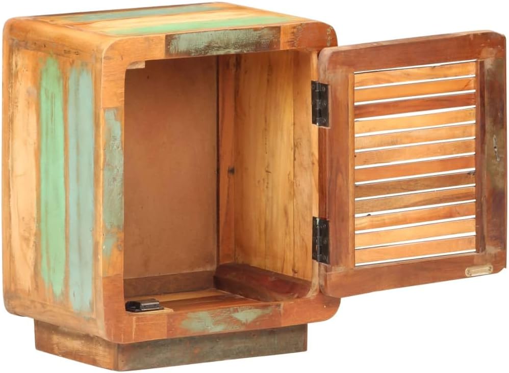 Rustic Wooden Bedside Cabinet with Spacious Drawer, Weathered Finish Reclaimed Wood Nightstand for Bedroom or Living Room, Compact 15.7x11.8 Inch Storage Organizer