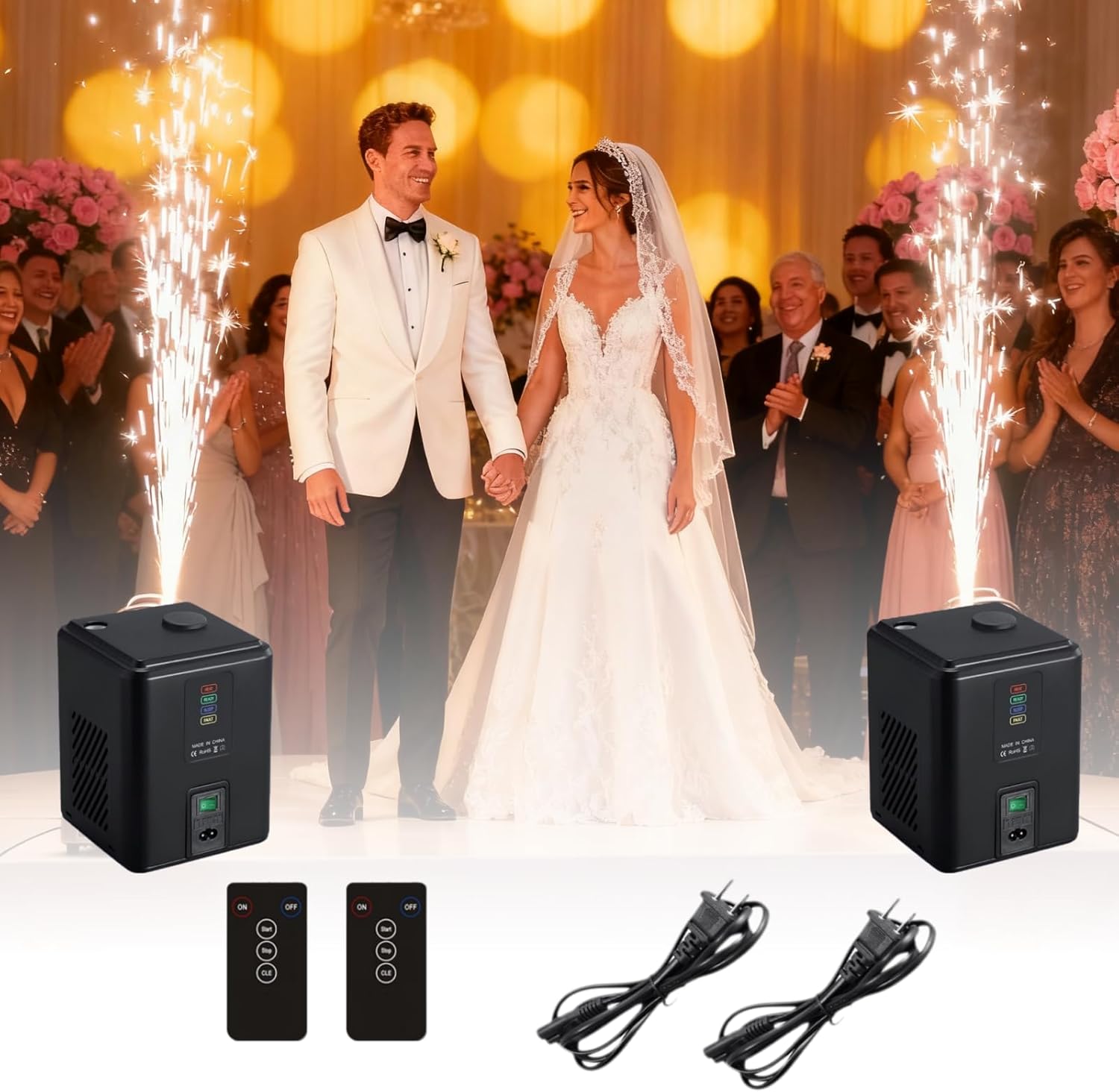 2 PCS Mini Cold Sparrrk Machine, Portable Effects Device w/Auto Safety Cutoff - for Stage Wedding Party Events (Black, Only Machine, Consumables Excluded)