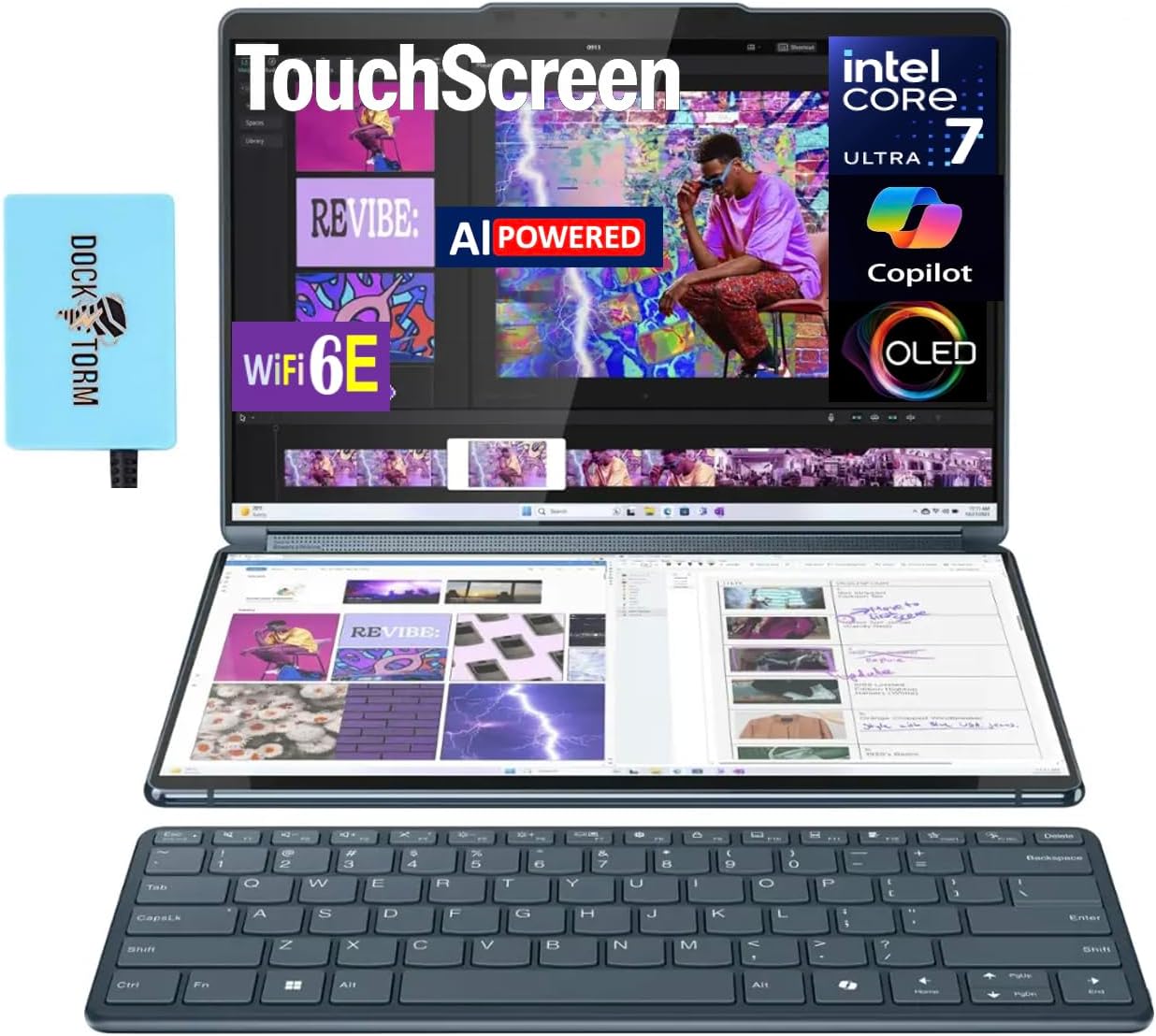 Lenovo Yoga Book 9i 2-in-1 AI Copilot PC Laptop 13.3" 2.8K Dual Screen OLED Touch Display (Intel Ultra 7 155U, 16GB LPDDR5X, 1TB SSD, 3 Thunderbolt 4, WiFi 6E, Win 11 Pro) w/DKZ USB Port Expander