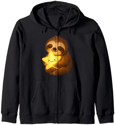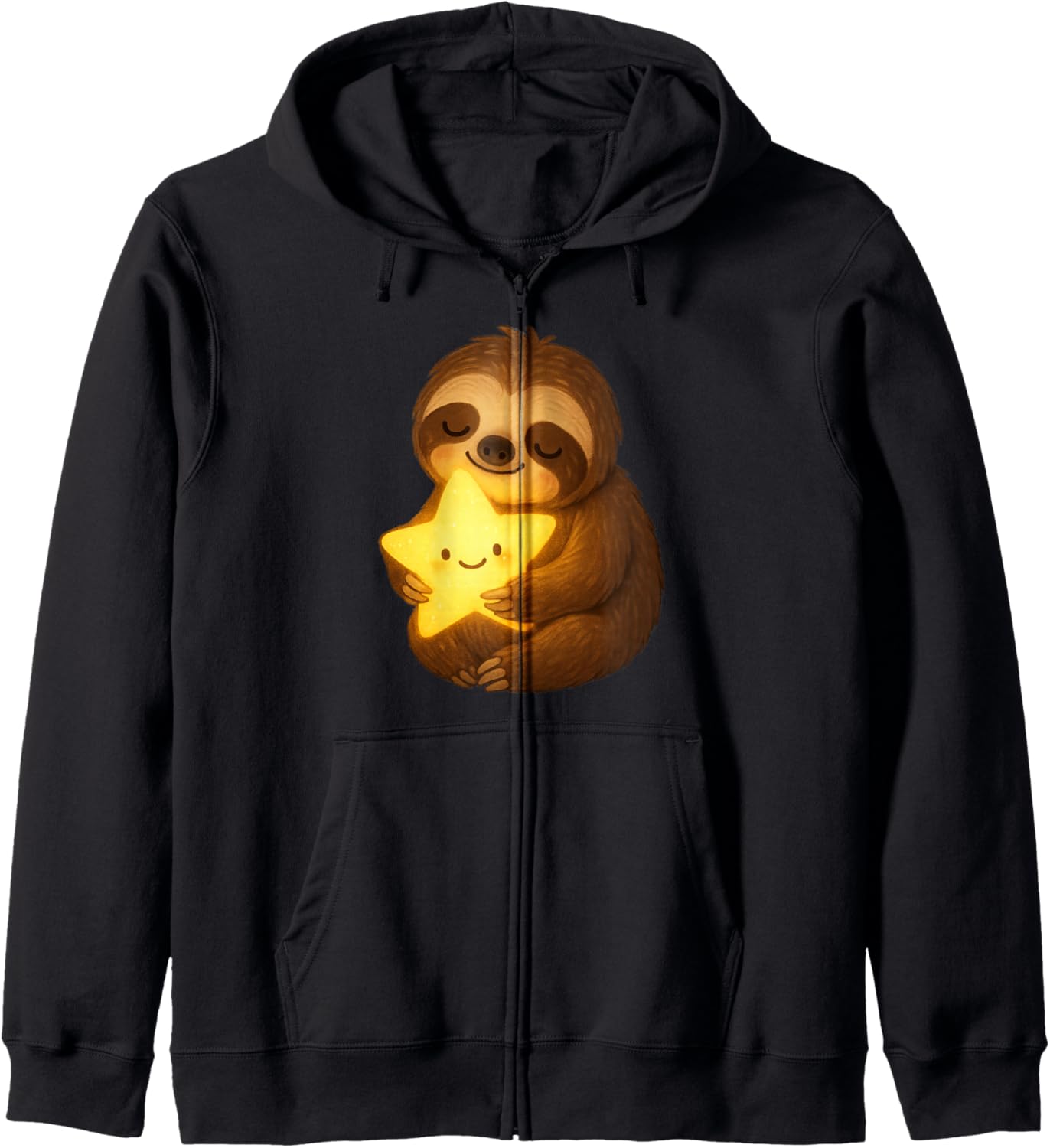 Smiling Sloth Hugging Star Cozy Night Cute Character Art Zip Hoodie