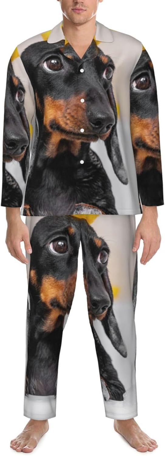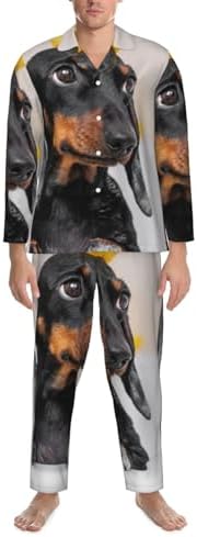 Dachshund Sitting In Bathtub Print Mens Pajama Set Button Down Pjs Long Sleeve 2 Piece