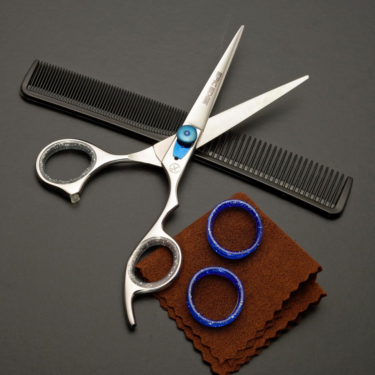 Includes professional hair cutting scissors microfiber cloth, a pair of extra finger rings, and a comb – designed for all needs. This haircutting scissors for professionals is perfect for all needs.