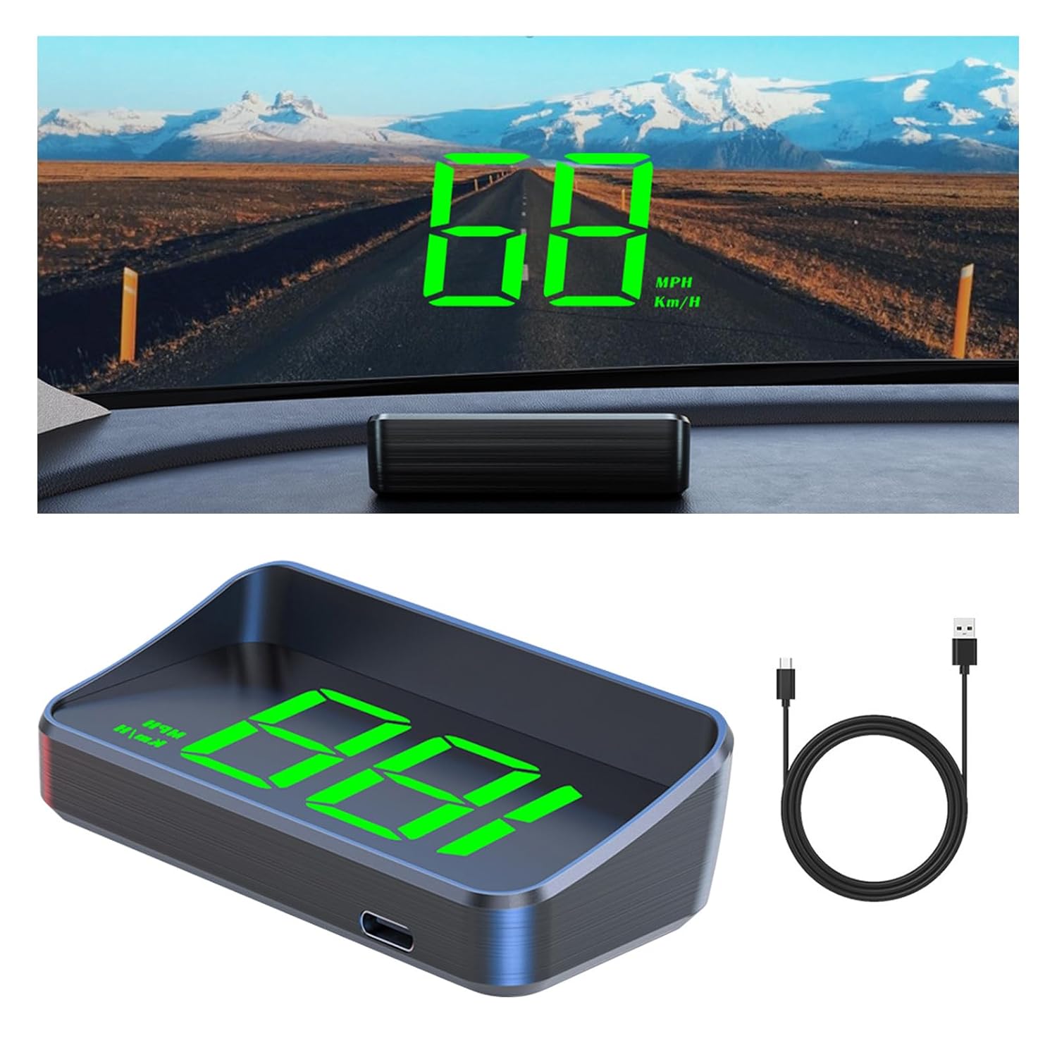 We specialize in auto, motorcycle, and bicycle accessories.🚙【Product Features】➤ The heads up display for cars uses the car's windshield as a projection screen to project data directly onto it➤ The hud for cars features intelligent light sensors that automatically adjust screen brightness based on external light conditions➤ It maintains a stable connection for precise speed data, whether you're driving in urban or rural areas ➤ With a delicate and compact body, you can clearly see the data no matter where you place it, without affecting your line of sight💬【Product Description】♦ Product Name: Multi-Function Head-Up Display♦ Font Color: White, Green♦ Dimensions: As shown♦ Features: Plug and Play♦ Applicable Models: Car Speedometer Display for Fiat Ducato Freemont Multipla Marea Ottimo Panda Palio Pulse Punto📦【Package Includes】♦ 1 × Heads up Display for Cars♦ 1 × USB cable♦ 1 × Reflective film♦ 1 × Instruction manual♦ 1 × Non-slip double-sided tape✨【Note】1. The HUD speedometer must not use a voltage higher than 5V power supply, otherwise it may cause damage2. When the satellite icon flashes, it is recommended to move the vehicle to the open road, which will help the car heads up display search signal3. When the same GPS device is installed on your car, it will affect the HUD speedometer signal search4. If you find a certain difference in the speed display after starting the HUD speedometer, you can follow the instructions to enter the setting mode to manually fine-tune☑️【Customer Support】If you find that the product is not compatible with your vehicle, or if you encounter any issues with the product, please feel free to email us, and we will respond to you as soon as possible