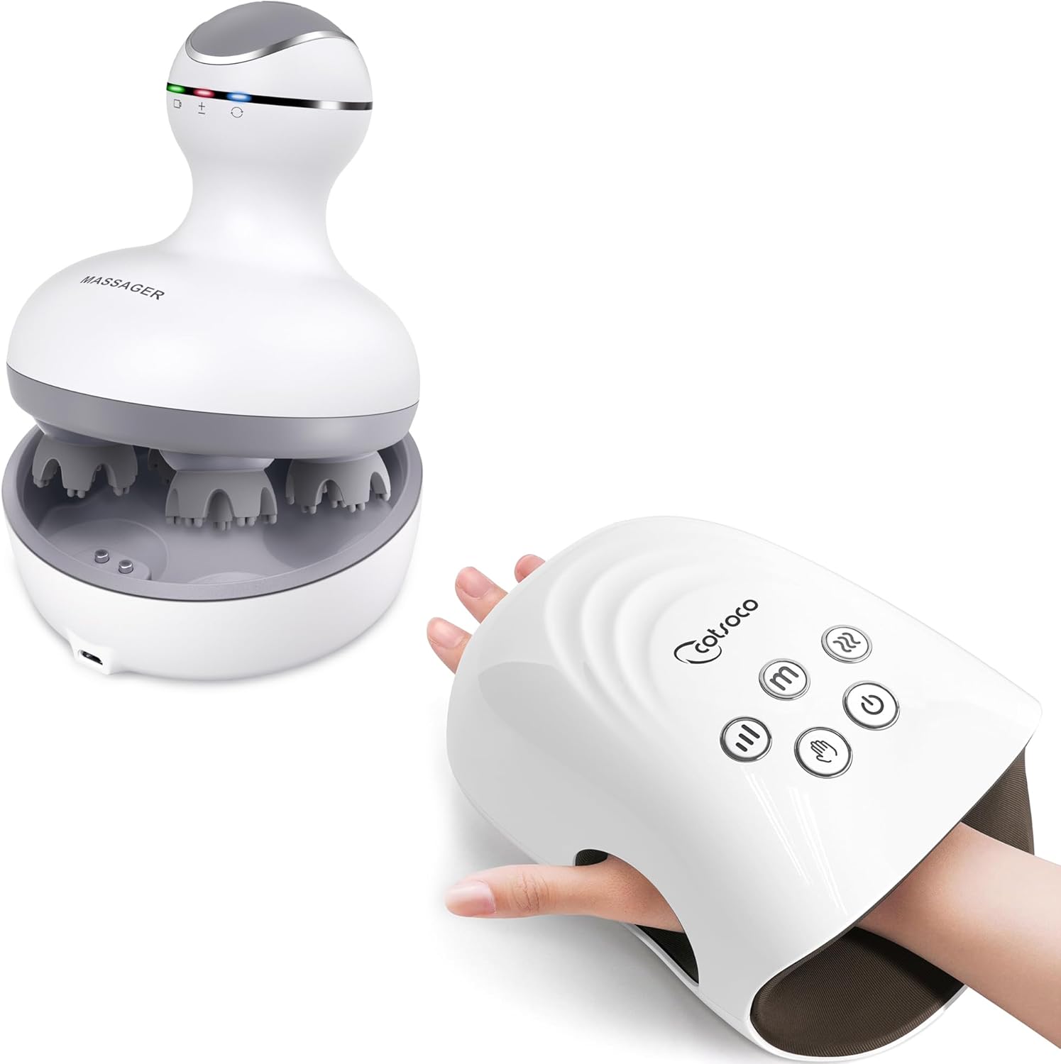 cotsoco Electric Head Massager & Hand Massager with Heat and Compression for Arthritis and Carpal Tunnel