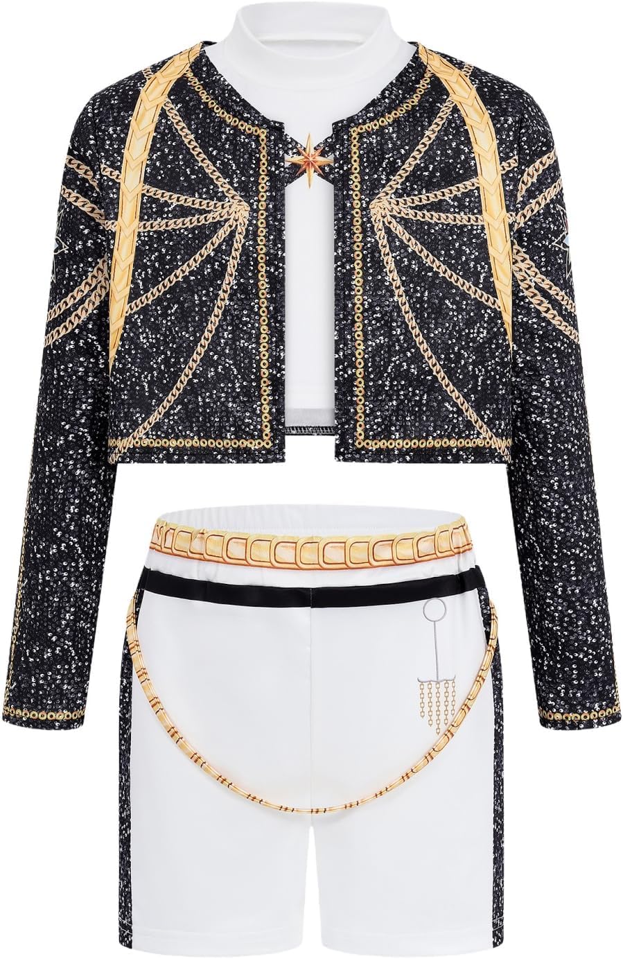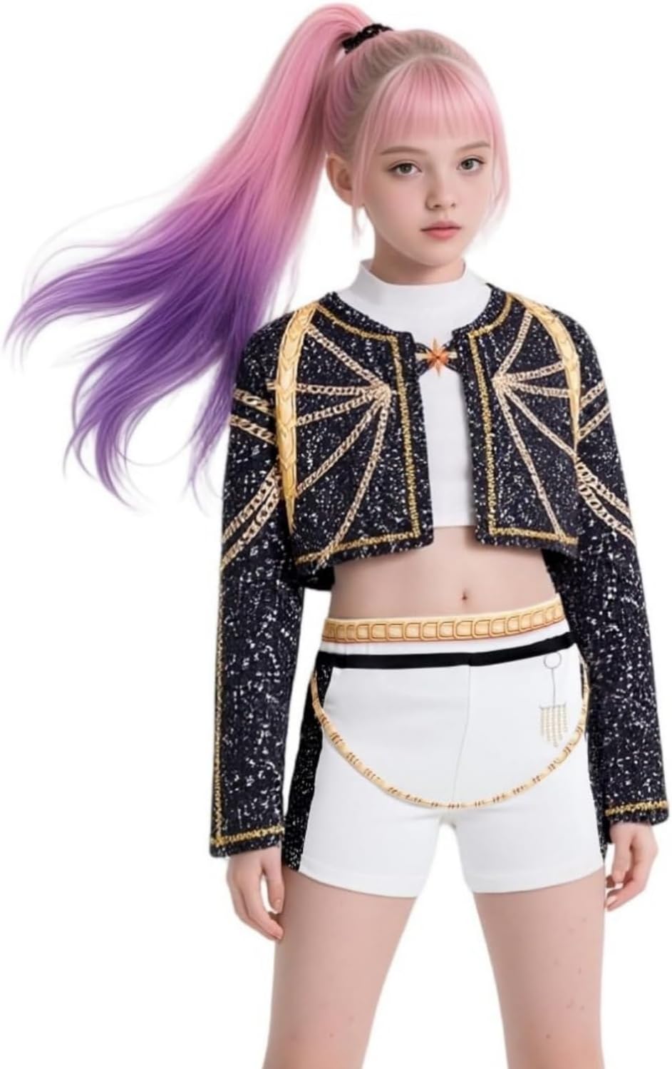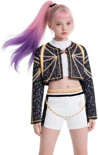 Rumi Golden Costume Kids, Kpop Girls Halloween Cosplay Outfit 3PSC Set Include Jacket T-Shirt Shorts