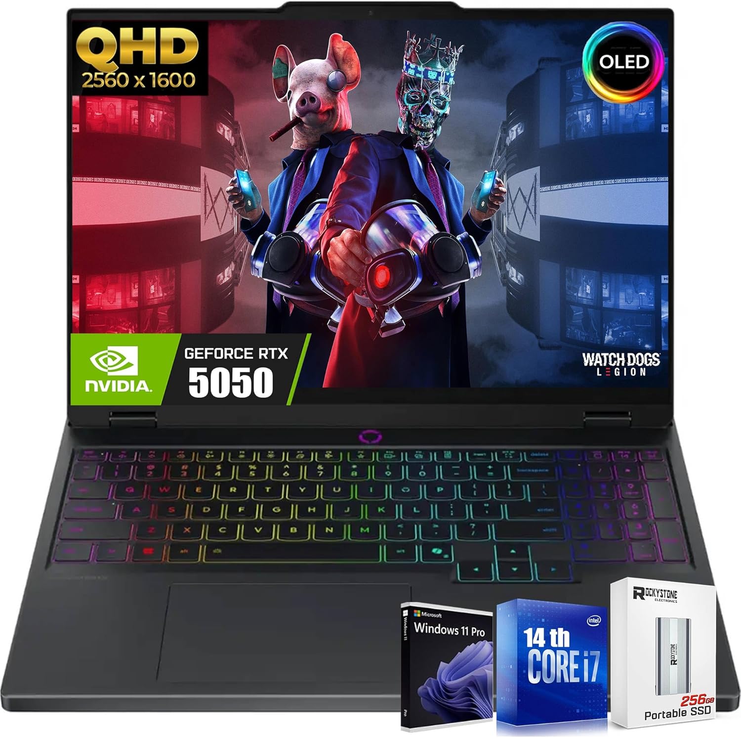 We sell computers with upgraded configurations, so the original factory box will be opened and resealed to install the upgrades to achieve the specification as advertised. Defects & blemishes are significantly reduced by our professional inspection & testing. Processor & Memory: Intel Core i7-14700HX, 20C (8P + 12E) / 28T, P-core 2.1 / 5.5GHz, E-core 1.5 / 3.9GHz, 33MB 32GB DDR5-5600 RAM Drives: 2TB SSD PCIe 4.0 SSD No Optical Drive Graphics & Video: 15.1" WQXGA (2560x1600) OLED 500nits glossy, 100% RGB, 165Hz, Dolby Vision, DisplayHDR True Black 600 Dedicated NVIDIA GeForce GTX 5050 8GB GDDR7 Graphics Operating System: Microsoft Windows 11 PRO Communications: Wi-Fi 7, 802.11be 2x2 + BT5.4 5.0MP with E-shutter 720p HD Front Facing Camera Stereo speakers, 2W x2, optimized with Nahimic Audioc Battery: 4 Cell 80Wh, Up to 9 hours on average usage, 245W Slim Tip (3-pin) Keyboard: 24-Zone RGB Backlit, English Buttonless Mylar surface multi-touch touchpad, supports Precision TouchPad (PTP), 75 x 120 mm (2.95 x 4.72 inches) Ports & Slots: 2x USB-A (USB 5Gbps / USB 3.2 Gen 1) 1x USB-A (USB 10Gbps / USB 3.2 Gen 2), Always On 1x USB-C (USB 10Gbps / USB 3.2 Gen 2), with USB PD 65-100W and Display Port 2.1 1x USB-C (USB 10Gbps / USB 3.2 Gen 2), with DisplayPort 1.4 1x HDMI 2.1, up to 8K/60Hz 1x Headphone / microphone combo jack (3.5mm) 1x Ethernet (RJ-45) Additional Information: Color: Eclipse Black Dimensions: 14.44" L x 9.26" W x 0.85-1.02" H Approximate Weight:4.84 lbs. What's in the Box: Laptop Charger User Guide 256GB External SSD