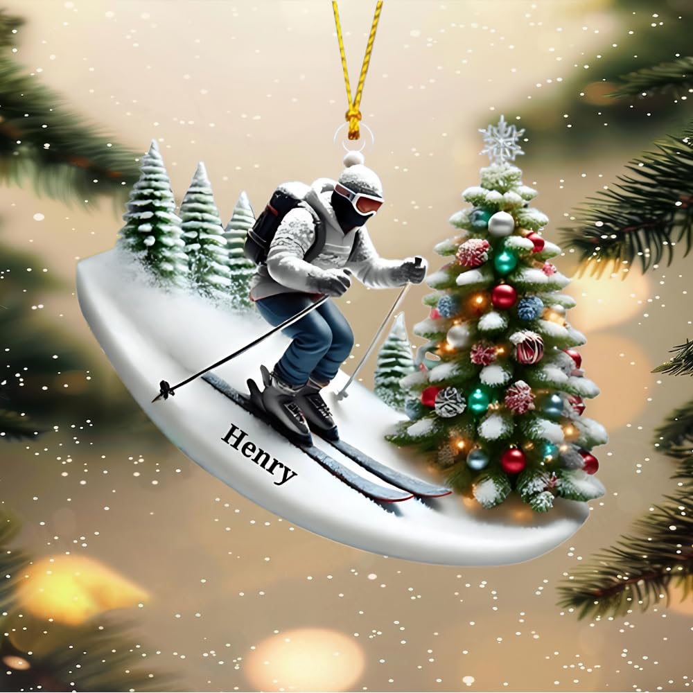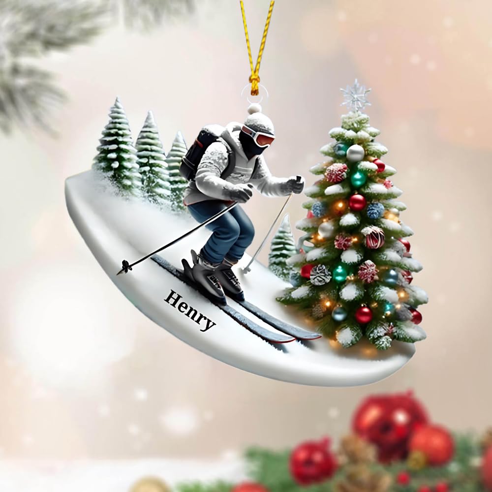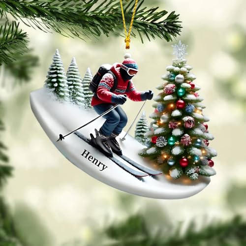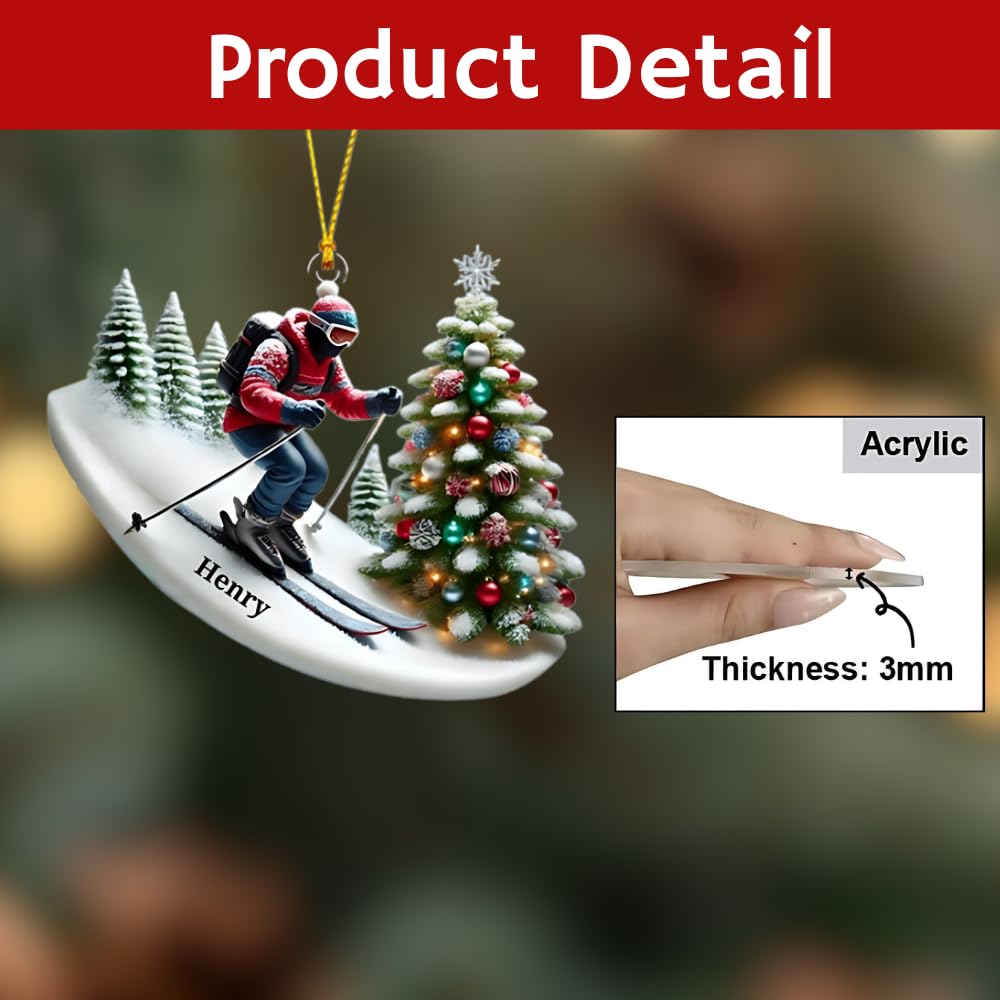 LASFOUR Personalized Skiing Christmas Ornaments, Skier 2D Flat Acrylic Ornament For Christmas Tree, Custom Name Snow Ski Christmas Ornament, Gifts For Skier (S3)