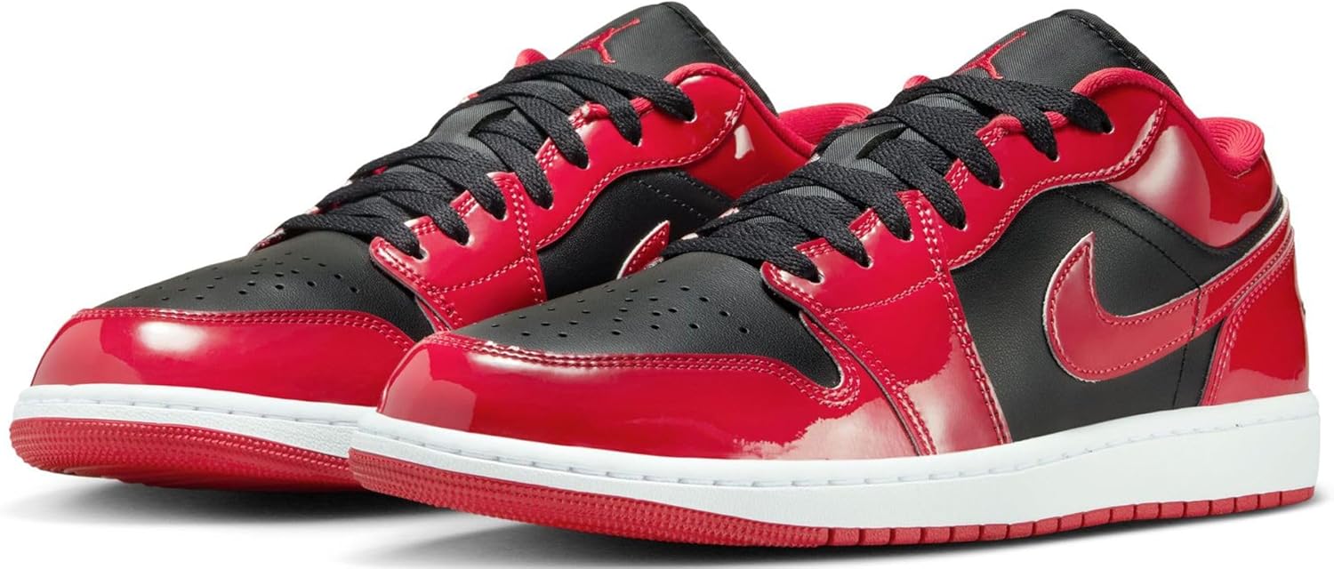 Air Jordan 1 Low Bred Patent Mens Lifestyle Shoes (Black/Vasity Red/White)