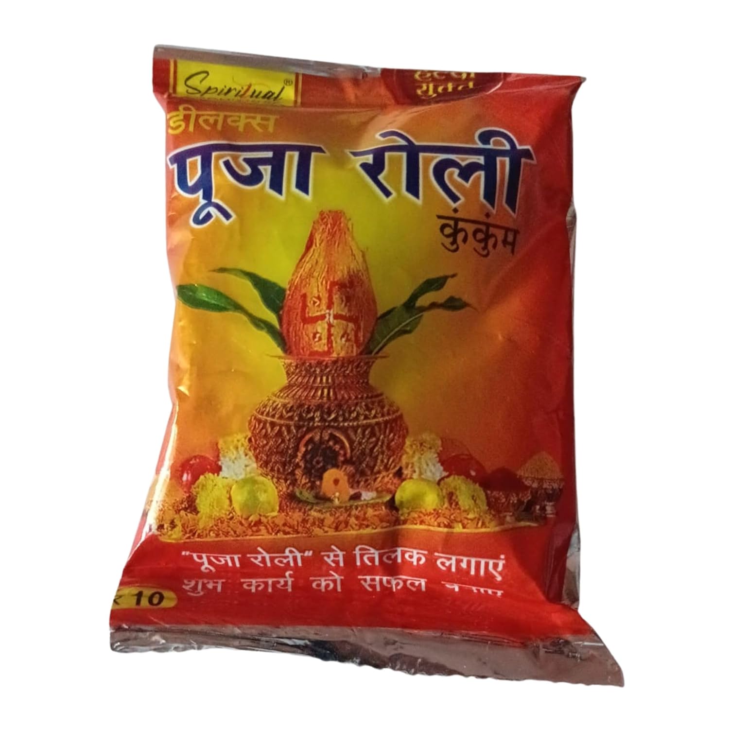 Traditional Sacred Powder: High-quality Pooja Roli Kumkum, commonly used for religious rituals, tilak, and cultural ceremonies, adding a spiritual touch to every occasion.