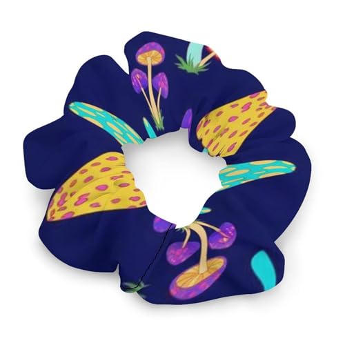 Soft Sleeping Scrunchie Elegant Ponytail Holder Hair Ties Daily Hair Accessories (Trippy Colorful Neon Mushrooms)