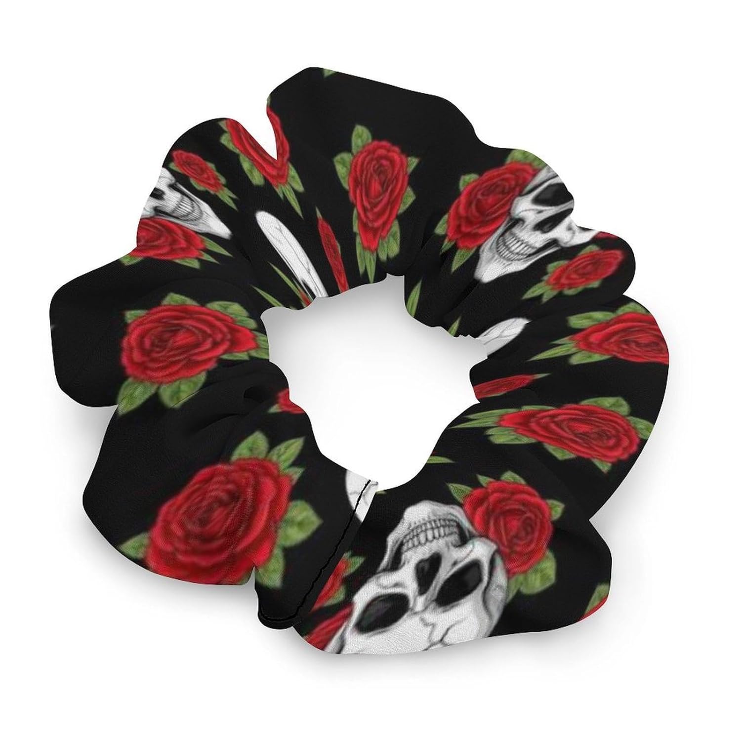 Elegant Hair Elastics Bands Halloween Skulls Red Rose Ponytail Holder Scrunchies Women Daily Hair Accessories