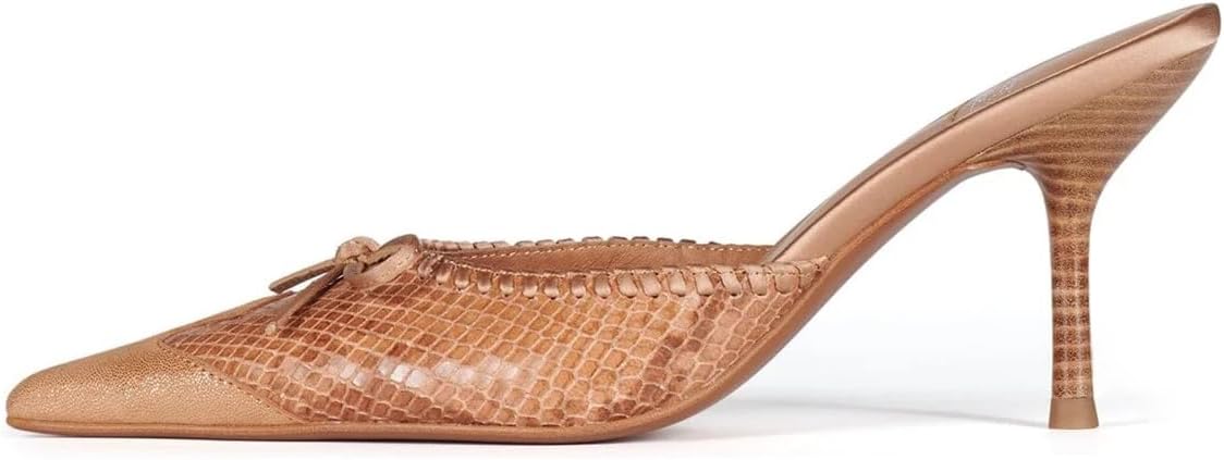 Womens Mule Heels Flip Flop Stileto Closed Pointed Toe Heeled Sandals with Bow Slip On Shoes Casual Party Dressy