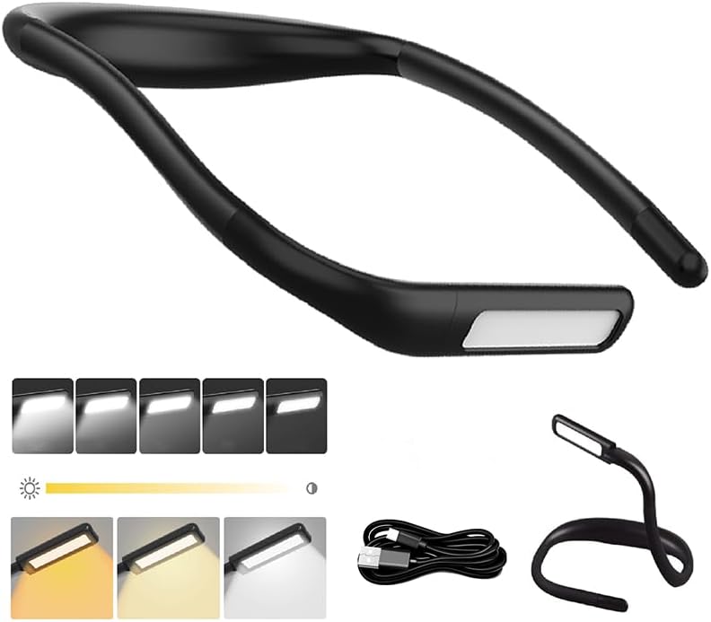 Rechargeable Neck Reading Light,LED Book Lamp with 3 Adjustable Color Temperatures,Eye-Friendly Light with Adjustable Brightness for Reading, Knitting,Crochet,Sewing,Camping & Crafting (Black)