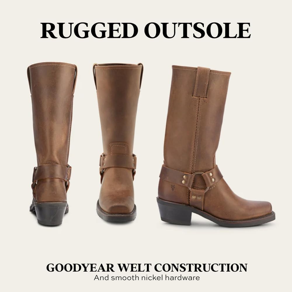 Frye Harness 12R Botas para Mujeres - 11 ½” Cuero Italiano, Suela de Goma Duradero con Construcción Genuine Stitch Welt y Herrajes de Níquel y Latón