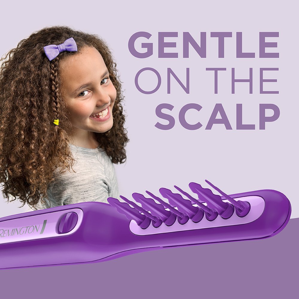 Remington Domestica el Enredo Cepillo Desenredante para Cabello Grueso y Rizado para Niños y Adultos, Desenredo Húmedo o Seco, Incluye Funda para Cepillo, Inalámbrico; Operado por Batería, Púrpura. (Baterias Incluídas)