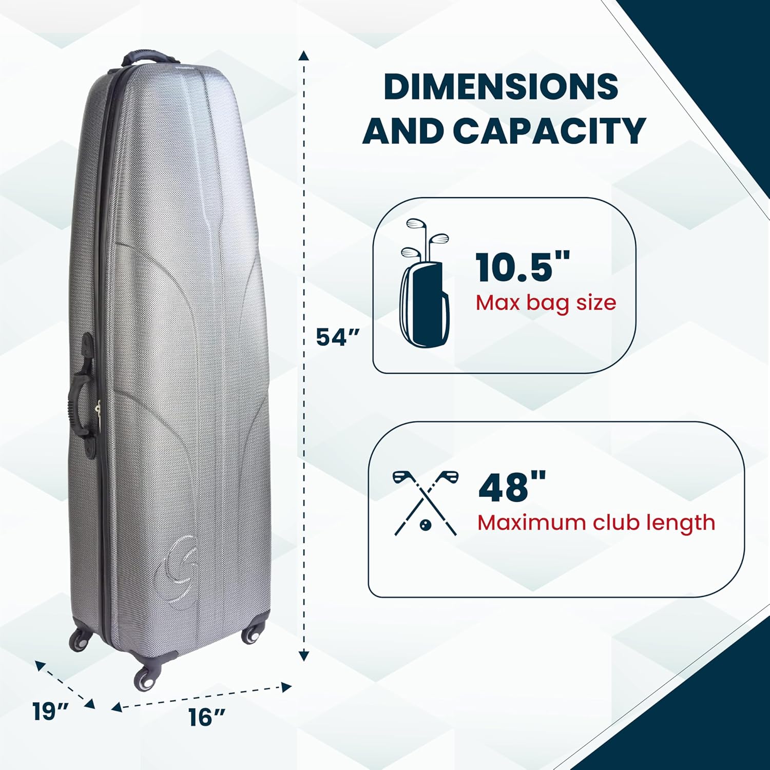 Proteja seu equipamento: Esta maleta de viagem de golfe rígida acomoda tacos de até 48" e bolsas de 10,5", mantendo os tacos mais longos protegidos; Duas alças de conforto garantem um transporte fácil