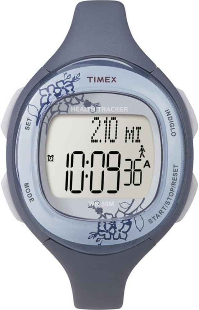 Tracker de SaludReferencia: T5K484El Tracker de Salud Timex es un reloj cotidiano que puede motivarte a mantenerte activo al rastrear automáticamente tus pasos diarios, distancia y calorías quemadas. El Diario de Dieta integrado puede ayudarte a llevar un registro de la comida consumida durante el día y tomar decisiones inteligentes.Características: Sensor de caminata que mide pasos y distancia recorrida Rastreador de actividad diaria con memoria de 7 días Diario de Dieta para llevar un registro de unidades o calorías del día Se pueden establecer objetivos de dieta y caminata y te asesoraremos para alcanzarlos Modo de actividad que muestra pasos, distancia y calorías quemadas Modo de entrenamiento que muestra tiempo, distancia y ritmo de esfuerzo (lento/moderado/rápido) Configuración personal para personalizar el paso propio Temporizador de cuenta regresiva con modo de parada y repetición 3 Alarmas con respaldo de 5 minutos Resistente al agua hasta 50 m Ancho de la caja: 39 Material de la cristal o lente: Acrílico