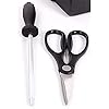 Juego de 22 Piezas Incluye: (8) Cuchillos de Carne de 4.5" y (1) Cada: Santoku de 6.5" | Chef de 8", de Descarte y Pan | Cleaver de 6", Chef, Utilitario y Deshuesador | Tenedor Utilitario de 7" | Utilitario de 5" | Emparejador de 3.5" | Emparejador de Pájaro de 3" | Tijeras | Varilla de Afilado de Acero | Bloque Giratorio de Madera de 360*