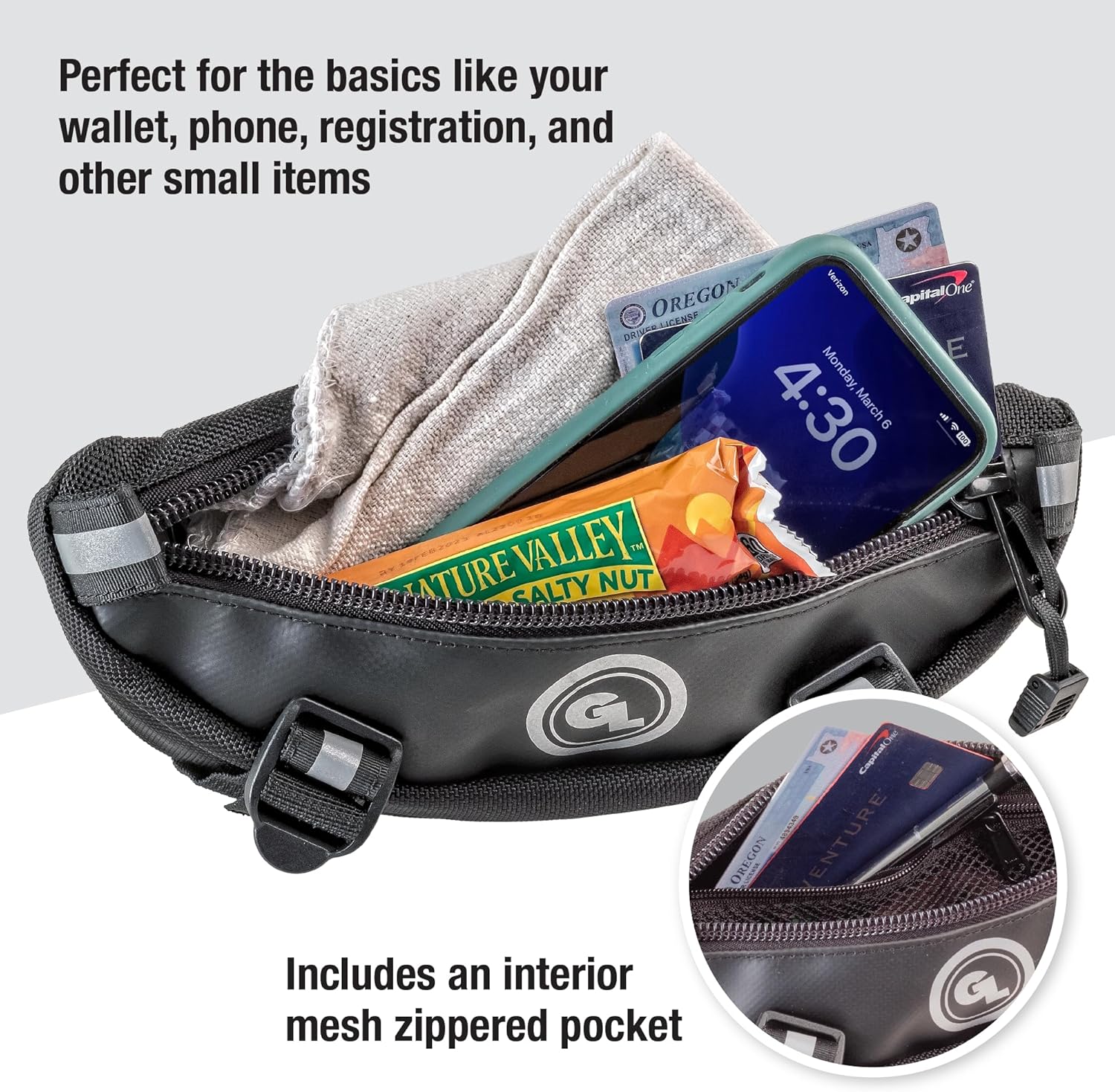 BOLSA DE MANILLAR VERSÁTIL: La bolsa Giant Loop Zigzag es una pequeña bolsa negra que se puede montar en cualquier manillar de motocicleta. Ideal para cuando solo necesitas llevar pequeños artículos contigo.
