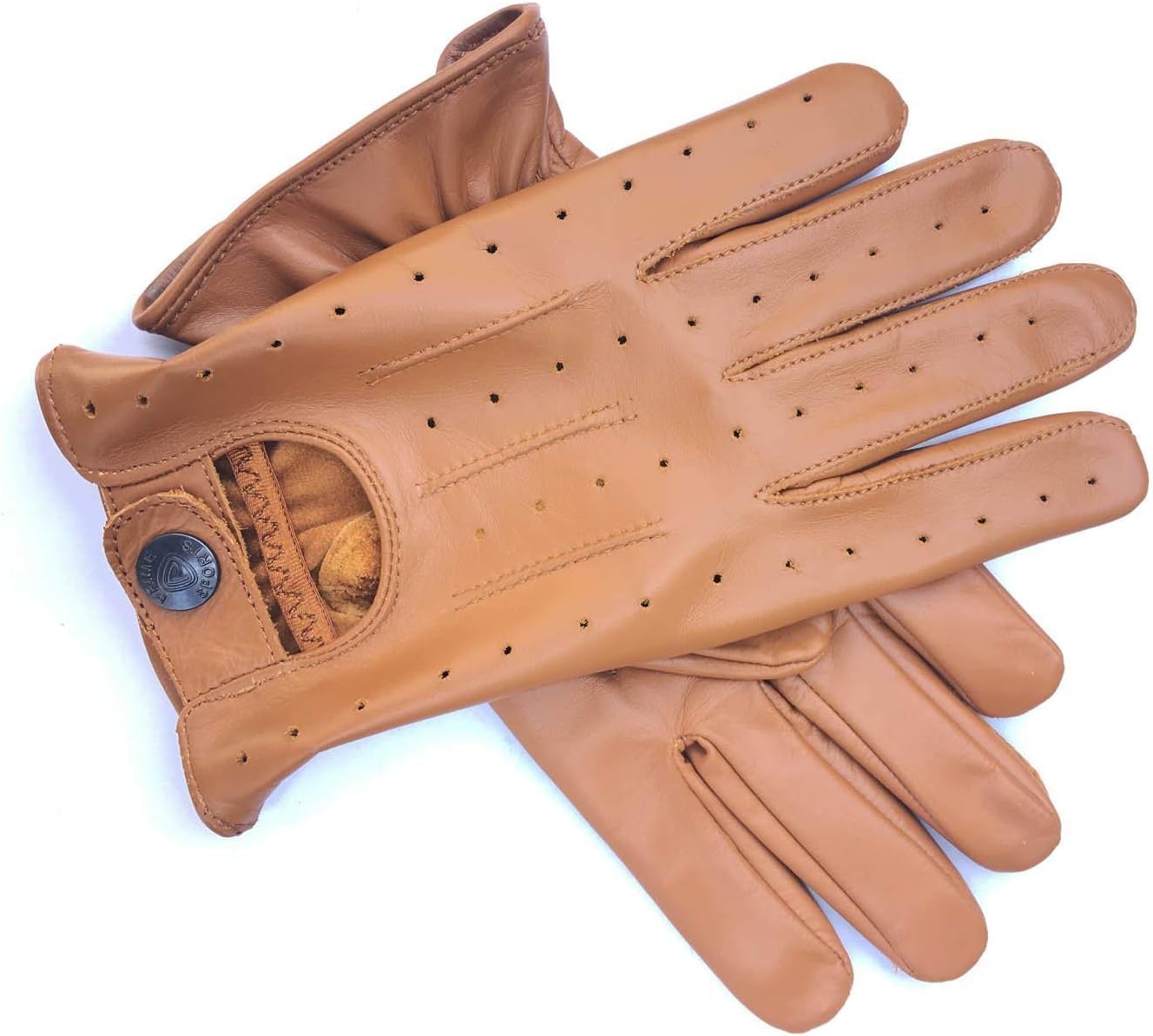 Guantes de conducción para hombre de cuero suave real sin forro (marrón, grande)