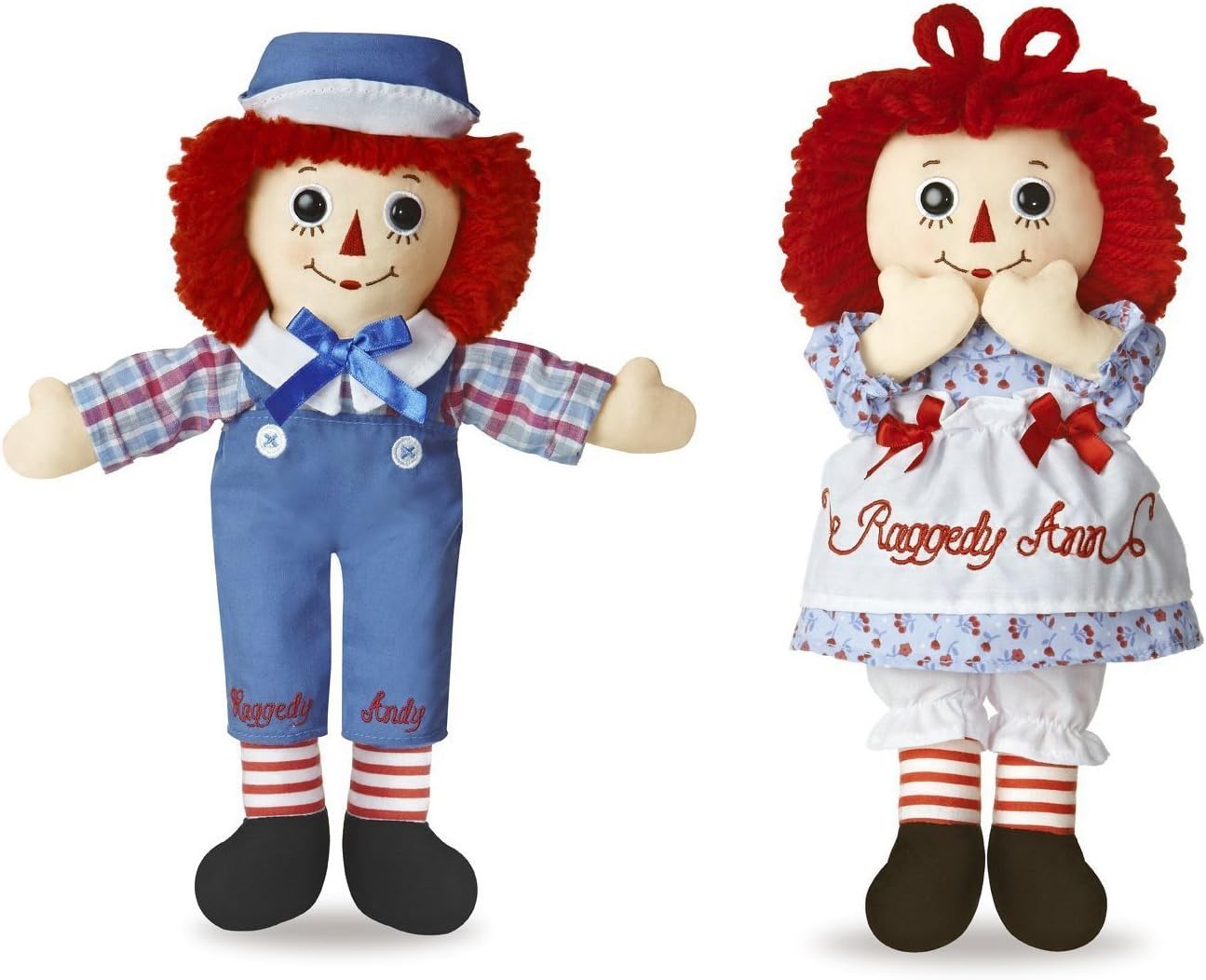 Clásicos Raggedy Ann y Raggedy Andy de 12'' - La mediana Raggedy Ann y Raggedy Andy están vestidas con telas de inspiración vintage y tienen cabello de hilo, ojos de botón y corazones "Te quiero" en el pecho. Raggedy Ann y Raggedy Andy fueron creados por Johnny Gruella en 1918. Las suaves y abrazables muñecas Raggedy Ann y Raggedy Andy de Aurora son tesoros familiares para ser transmitidos por generaciones. Estas encantadoras muñecas han sido diseñadas exclusivamente por Aurora world, con el aspecto clásico, atemporal y vintage que originalmente tenían Raggedy Ann y Andy. Están bellamente hechas a mano, con un detalle exquisito en sus atuendos y aspecto general. Un regalo muy especial para cualquier niño. Aurora world es internacionalmente conocida como líder en la industria de peluches.