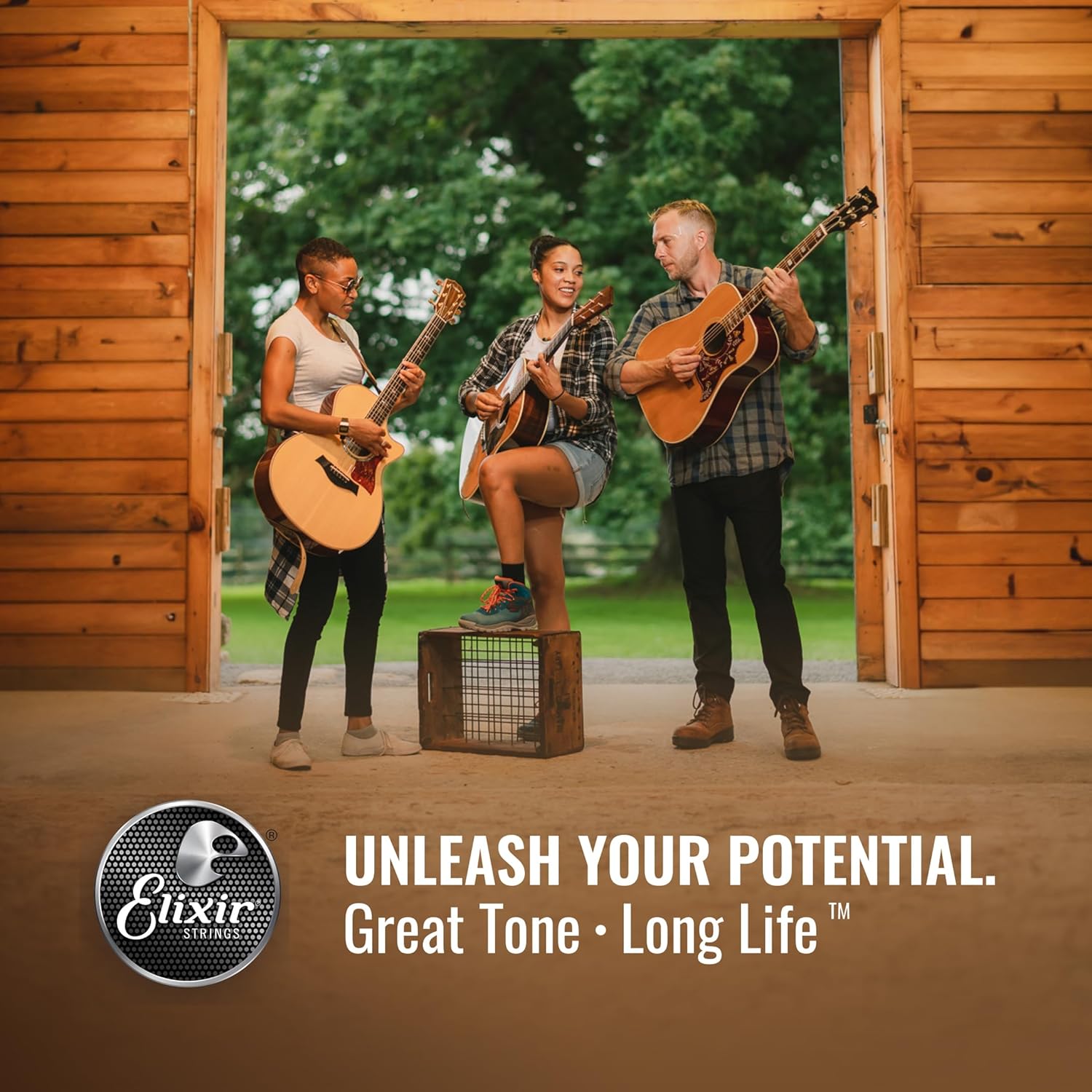 Prolonga tu tono con las mismas cuerdas de guitarra acústica que los músicos experimentados de todo el mundo confían para mantener su increíble tono más tiempo que cualquier otra cuerda disponible. ¡Y ahora por tiempo limitado, obtienes 3 juegos de cuerdas increíbles al precio de 2! Con ese juego extra gratis, estarás preparado por mucho, mucho tiempo... A diferencia de otras marcas de cuerdas, las cuerdas Elixir recubren toda la cuerda. Esto protege no solo la superficie exterior de la cuerda sino también los espacios entre los enrollamientos donde típicamente se acumula la suciedad que mata el tono en las cuerdas recubiertas y no recubiertas de otras marcas. El recubrimiento anti-óxido en las cuerdas de acero simple asegura una vida de tono más larga para todo el juego. ¿Quién no querría más tiempo de juego de calidad entre la molestia y el costo de cambiar las cuerdas? De diseño premium, estas cuerdas acústicas construidas con alambre de bronce 80/20 (80% cobre, 20% zinc) tienen un tono brillante con una presencia expresiva y vibrante. Comparadas con nuestro recubrimiento POLYWEB original, el ultradelgado recubrimiento NANOWEB se siente más como una cuerda tradicional. Para una sensación más suave y elegante, prueba el recubrimiento POLYWEB original en nuestras cuerdas acústicas de bronce 80/20, que también tienen un tono más robusto y redondeado. Para un equilibrio entre lo audaz y lo brillante, nuestras cuerdas de guitarra acústica de bronce fosforoso con recubrimiento NANOWEB ofrecen un tono completo y una claridad brillante en los agudos con la misma sensación suave que estas cuerdas de bronce 80/20. Por supuesto, el tipo de cuerda que tocas es todo una cuestión de preferencia personal. ¿No estás seguro de qué tono o sensación es la adecuada para ti? Pruébalas por ti mismo y encuentra tu nueva cuerda favorita de Elixir strings. Cuerdas Elixir: gran tono. Longitud máxima.