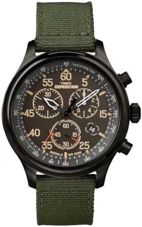 El Timex Expedition Field Chrono se inspira en el diseño de relojes militares vintage. El dial único presenta números en incrementos de cinco hasta 60 y tres subdiales que rastrean minutos, segundos y 1/20 de segundo por hasta 30 minutos. Una ventana de fecha fácil de operar está ubicada a las 4 en punto. Con la función Quick Date, puedes ajustar la fecha en el reloj sin girar la corona para cada período de 24 horas. Solo saca el tallo a medio camino y gira hasta alcanzar la fecha deseada. También ofrece resistencia al agua hasta 330 pies (100 metros) y una correa de cuero duradera. El Indiglo night-light ilumina uniformemente la superficie del dial del reloj utilizando tecnología de iluminación electroluminiscente azul patentada. Usa menos energía de la batería que la mayoría de los otros sistemas de iluminación de relojes, permitiendo que la batería de tu reloj dure más tiempo.