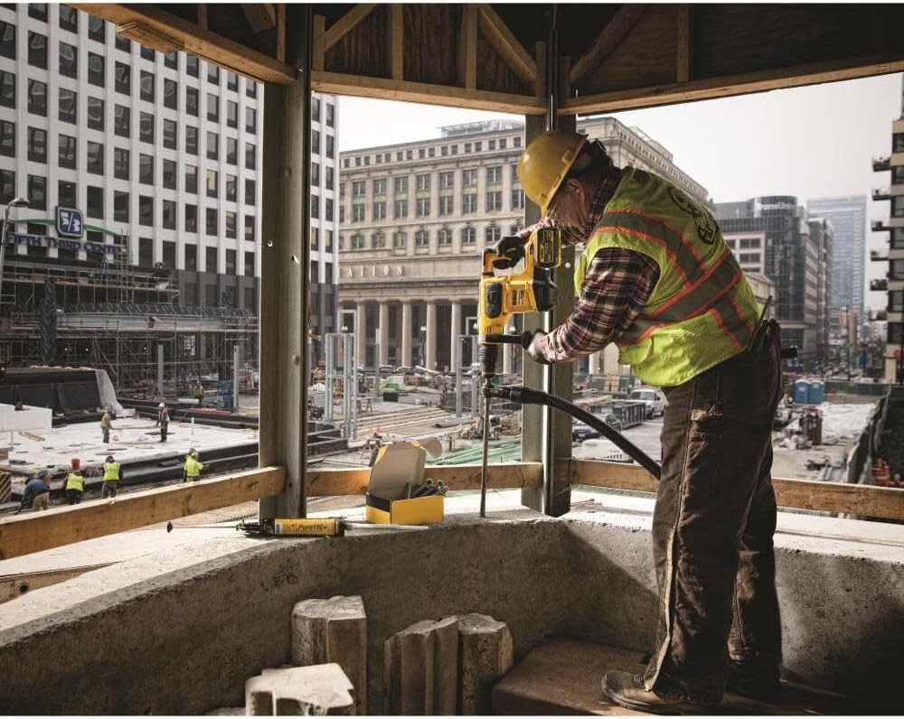 El taladro martillo DEWALT tiene 6.1 julios de energía de impacto para perforación y picado rápido, incluso en el hormigón más duro.