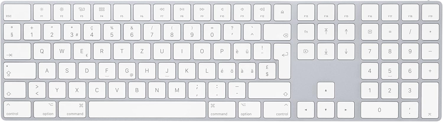 Apple Magic Keyboard con teclado numérico: Inalámbrico, Bluetooth, Recargable. Funciona con Mac, iPad o iPhone; Suizo - Blanco