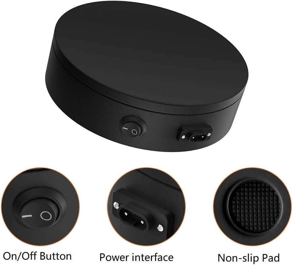 PERFECTO PARA IMÁGENES DE 360° - Diseñado específicamente con software de imagen 360°, descubrirá que la mesa giratoria es el producto perfecto, la tasa de rotación de 50 segundos por círculo, bajo ruido y bajo consumo de energía.
