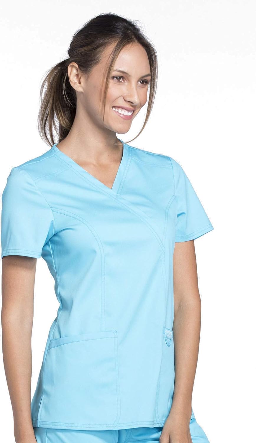 Cherokee Scrubs para Mujeres Mock Wrap Top con 3 Bolsillos, Costuras Princesa en la Parte Posterior WW610