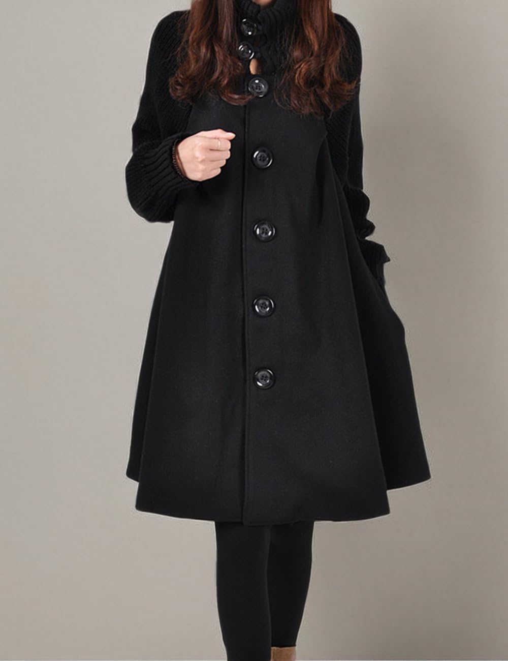 Abrigo de lana con cuello alto y solapa para mujer Sexyshine de longitud media a larga y solapa simple