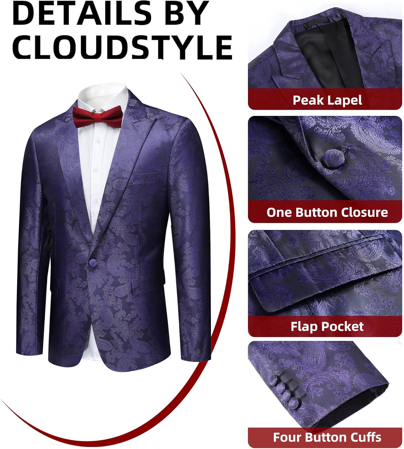 Traje de lana Paisley para hombre de corte slim de Cloudstyle, chaqueta de un botón para fiestas