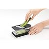 El conjunto de mini cortadores de cerámica avanzada Kyocera es ideal para una variedad de tareas rápidas y fáciles de corte, juliana o ralladura. El conjunto incluye tres herramientas mini ideales para usar sobre cuencos, platos o el recipiente proporcionado. El Mini Cortador Mandoline, Mini Cortador Julienne y Mini Rallador están diseñados para ajustarse de forma segura en la parte superior del recipiente que también sirve como recipiente para recolectar alimentos. Perfecto para zanahorias, pepinos, calabacines, apio, rábanos, coles de Bruselas, jengibre, cebollas pequeñas y patatas, manzanas, queso y más. El recipiente de almacenamiento de plástico cuenta con una base de goma extraíble antideslizante para mayor seguridad y fácil limpieza. Los alimentos se deslizan sin esfuerzo a través de las afiladas cuchillas de cerámica. Las cuchillas de cerámica ultra afiladas permanecen afiladas más tiempo que las cuchillas de metal, no oxidan ni doran los alimentos y son muy fáciles de limpiar. El protector de mano incluido sostiene los alimentos de forma segura y protege los dedos. Kyocera es un fabricante centrado en el cliente de productos de cubertería, herramientas de cocina y utensilios de cocina de cerámica de calidad excepcional.