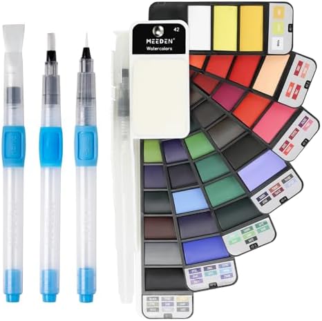 MEEDEN Travel Watercolor Paint Set: Portable 42 Assorted Water Colors Paint Kit with 4 Brushes
