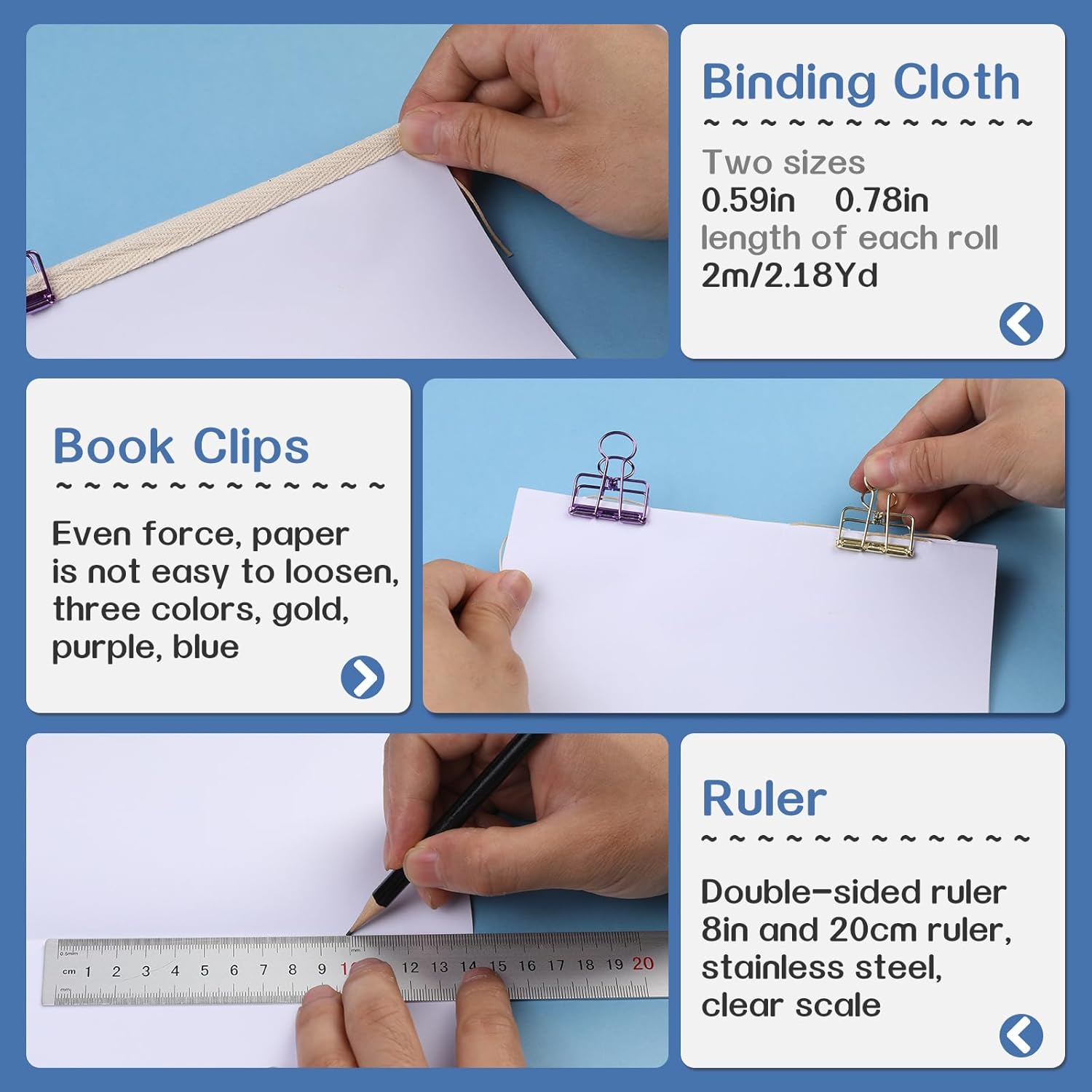 Suministros Prácticos de Encuadernación: Este kit de inicio de encuadernación contiene todas las herramientas de encuadernación, así que si tiene esta herramienta de encuadernación, no tiene que preocuparse por carecer de herramientas durante el proceso de encuadernación por costura.