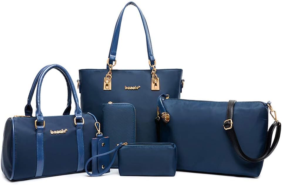 Bolso de hombro para mujer de nylon de 6 piezas con asa superior, set de bolso tote cartera con estuche para llaves