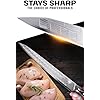 Rendimiento inigualable: Cuchilla de filo de bisturí implacablemente afilada con un ángulo de 8-12° por lado. Enfriado por nitrógeno para mejorar la dureza, flexibilidad y resistencia a la corrosión. Tang completo para una robustez sobresaliente y triple remachado para mayor resistencia. Esta larga hoja ofrece una versatilidad sorprendente y es adecuada para una variedad de tareas, incluyendo tallar asados, cortar barbacoa, shawarma, salmón, preparar frutas y verduras grandes como calabaza, calabaza y sandía.