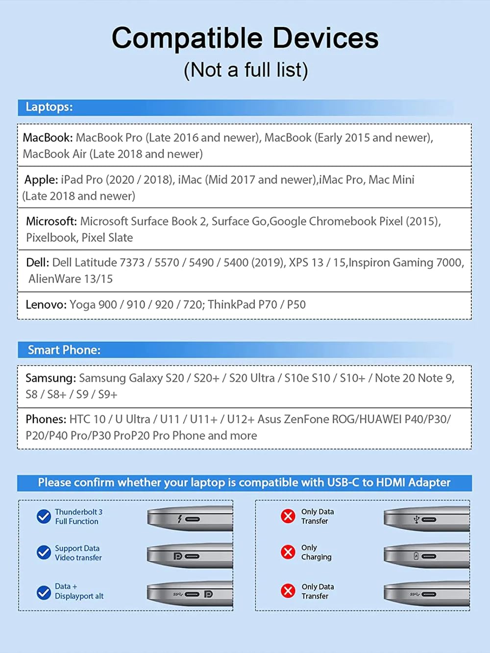 AMPLIA COMPATIBILIDAD: compatible con iPhone 16, 15 Pro Max, MacBook Pro 2016-2020, Surface Book 2, Surface Go, iMac 2017, MacBook 2017/2016/2015, Samsung Galaxy S8/S9/Note 8/Note 9, HTC U11, Pixel Book, Dell XPS 15/XPS 13, HP Envy 13, Galaxy Book, Chromebook, Chromebook Pixel, Intel NUC, Pixel Slate y muchos otros (ver sección detallada de la descripción del producto a continuación) --- recordatorio: para dispositivos con USB 3.1 Gen 1 y Samsung Galaxy S9/S8, puede tardar más tiempo en sincronizar, ten paciencia y dale más tiempo