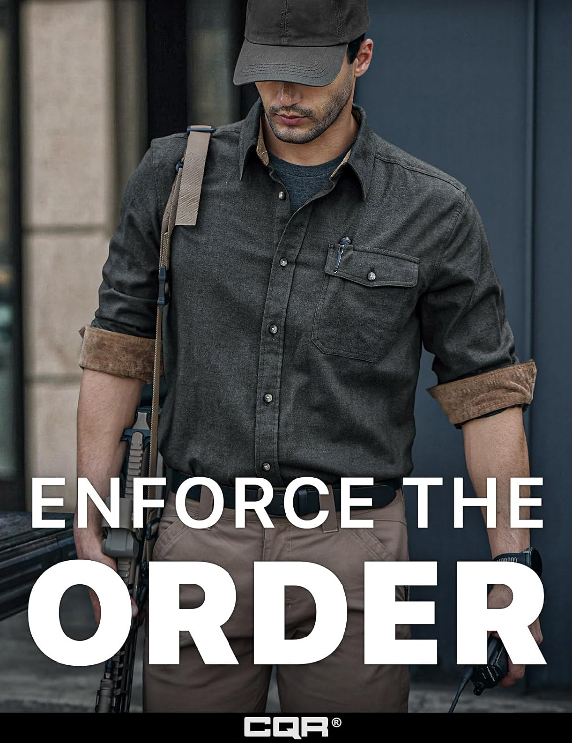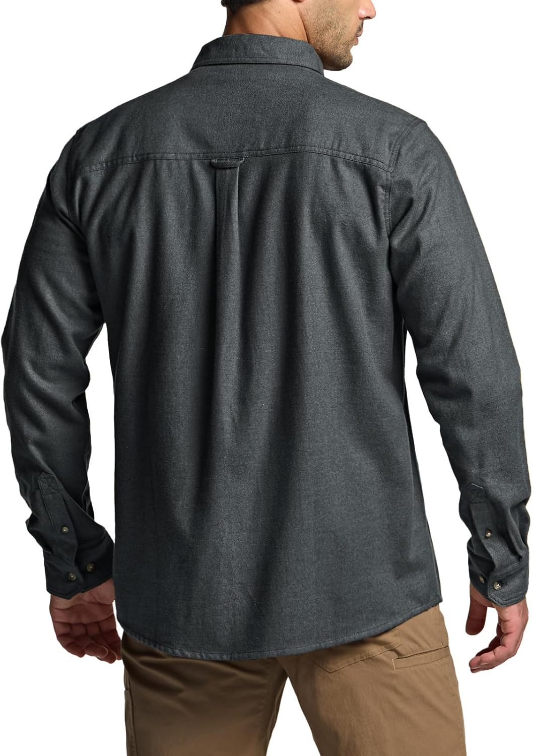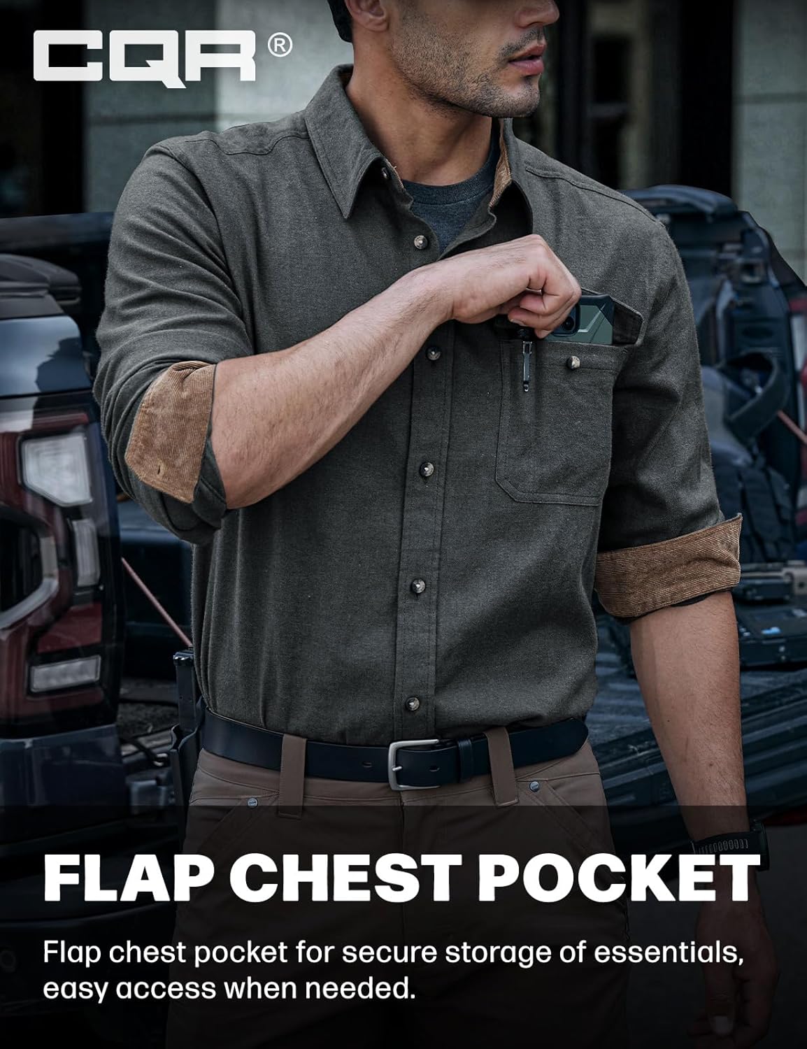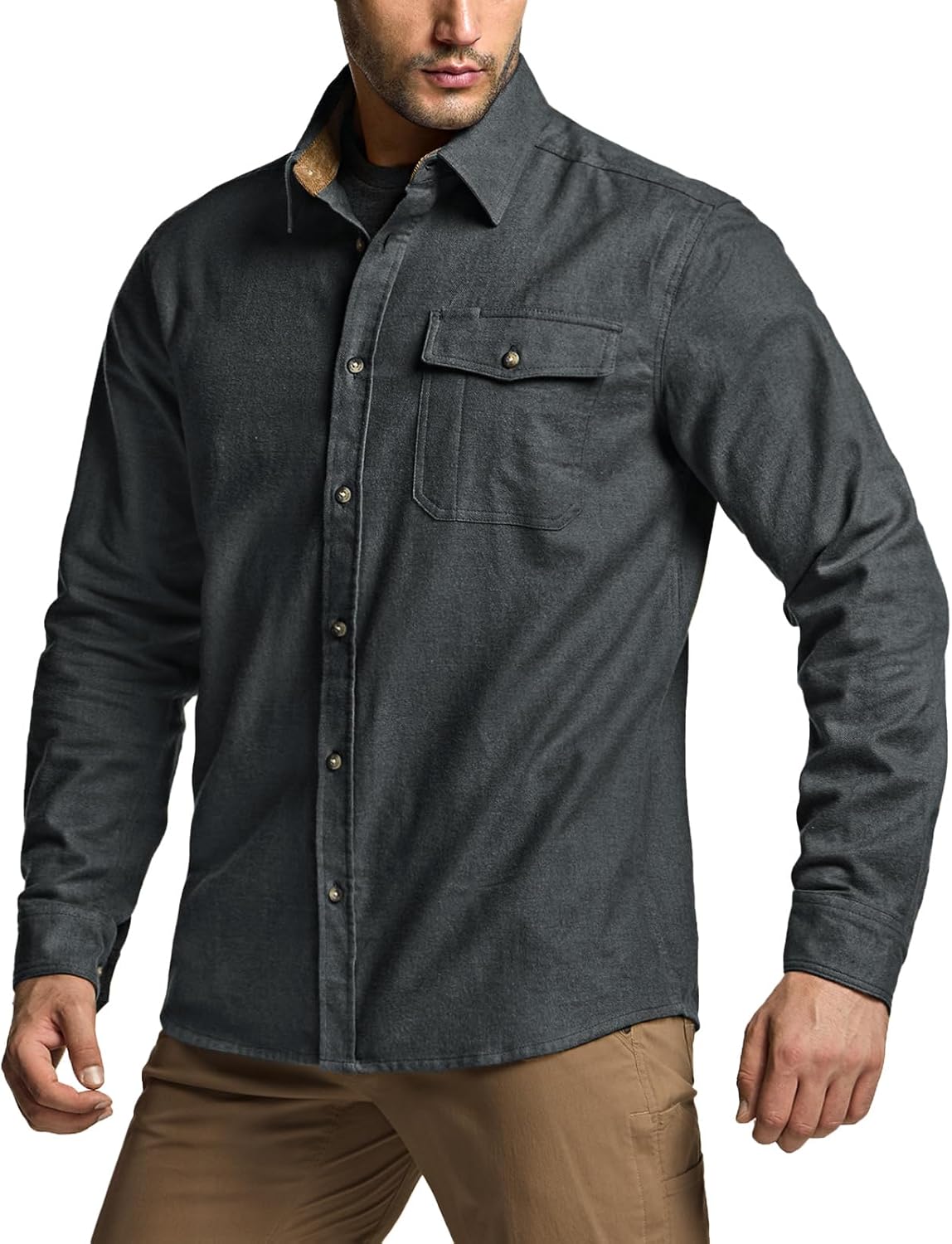 CQR Hombres 100% Algodón Camisa de Flanela Botón Plano, Manga Larga Camisa Casual Abrigada Suave para Exteriores