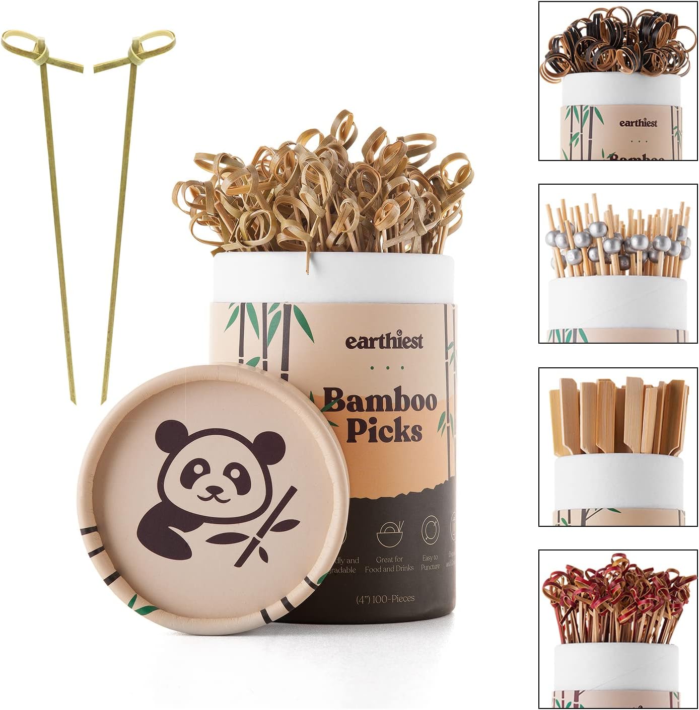Palillos de cóctel de bambú para aperitivos, bebidas, sándwiches y kababs 4" (100 unidades) - Elegantes palillos para aperitivos - Mini pinchos biodegradables para aperitivos